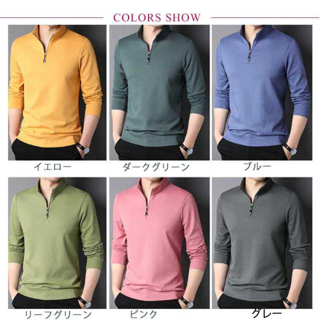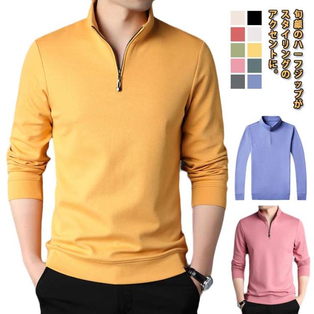 ハーフジップトレーナー 長袖メンズウェア カジュアルハーフジップ 長袖トレーナー メンズ 1/2 ジップ 立ち襟 リラックス感 スポーティー スポーツ カジュアル シンプル 無地 春 秋 全10色
