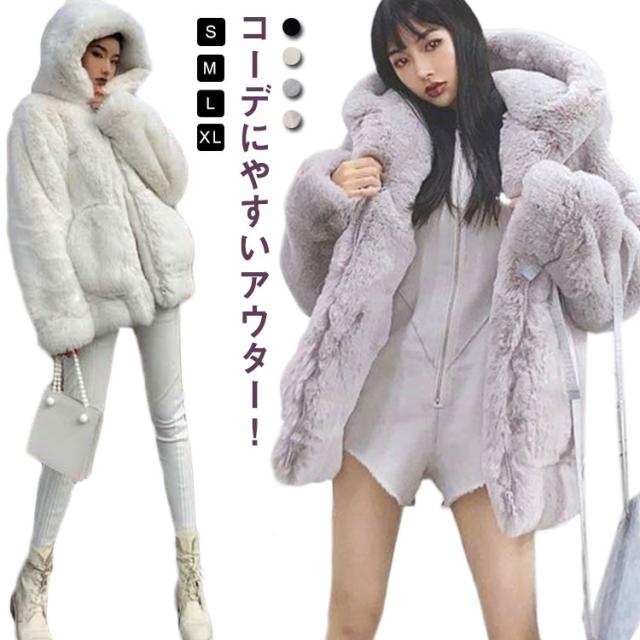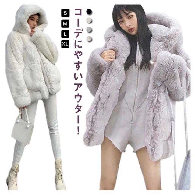 フェイクファーコート レディース 長袖アウター フード付き ファーコート フェイクファー かわいい 毛皮コート レデイース 秋冬 暖かい 30代 40代 カジュアル モコモコ きれいめ 高品質 毛皮 コート
