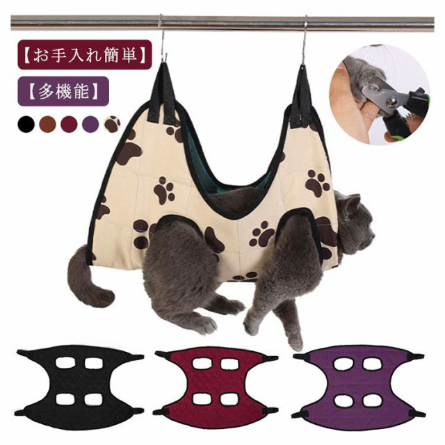ペット トリミング ハンモック 犬猫 美容 ハンモック ペット美容 グルーミング ネコ イヌ 吊り上げ ハンモック ハーネス 暴れ防止 爪切り シャンプー 耳掃除 入浴 拘束バッグ 送料無料 通気性 S字フック付き 自宅 ペットサロン ペット美容 小型犬 猫