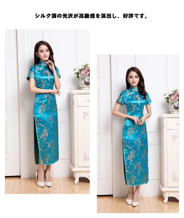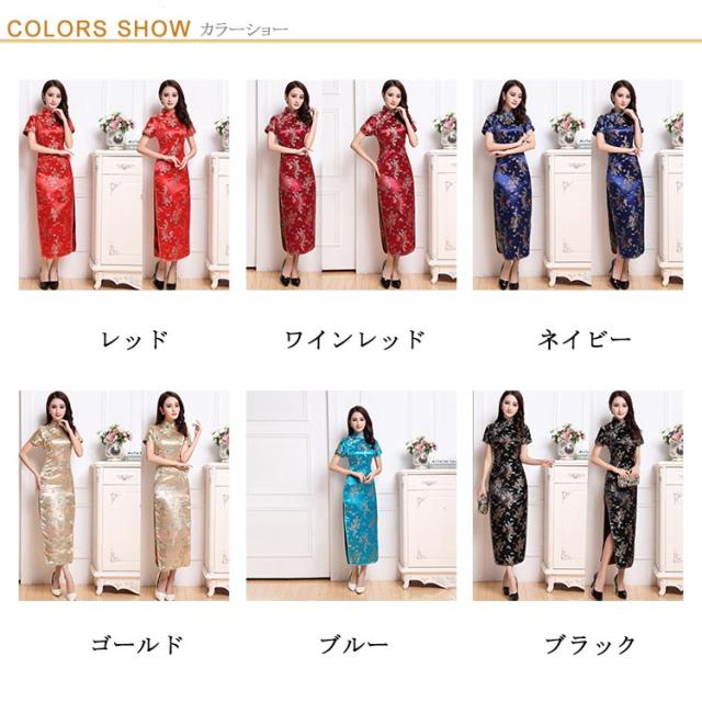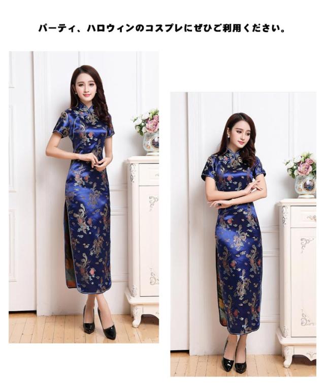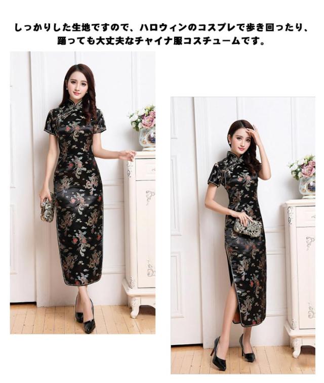送料無料 ハロウィン コスプレ チャイナドレス チャイナ服 コスプレ チャイナ コスプレ チャイナドレス 衣装 仮装 セクシー 龍柄 ロング 龍 ドラゴン ロングスカート ロング丈 ロングドレス 半袖 タイトスカート チャイナ サテン風 かわいい 可愛い スリット 本格的