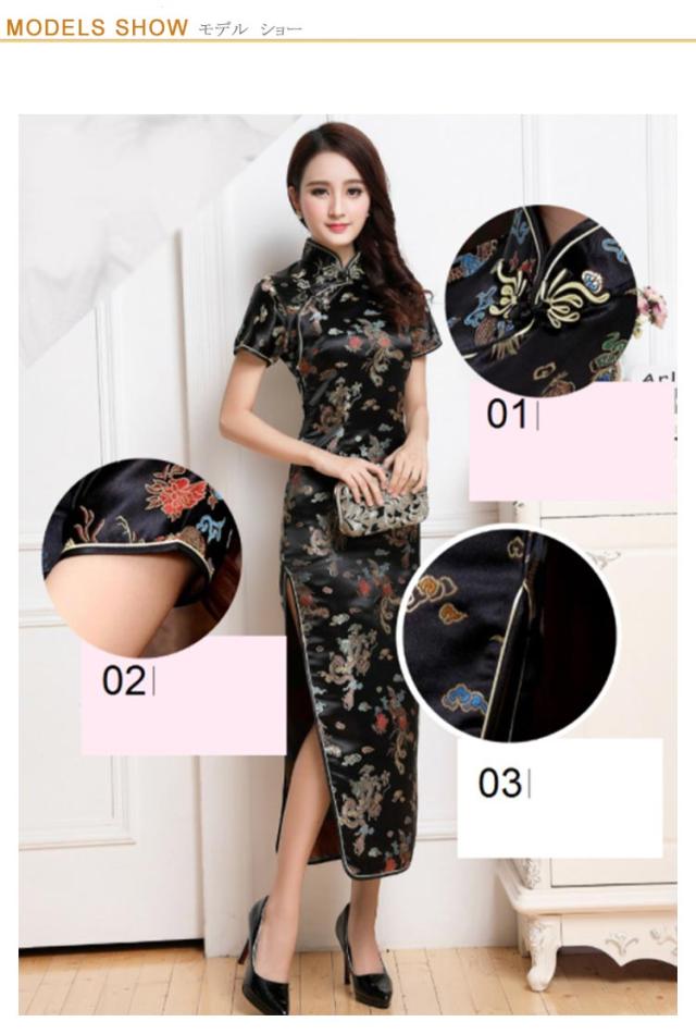 | 品質に自信あり!手触りがなめらかでしわのできにくい加工を施したチャイナドレスです。しっかりした生地ですので、ハロウィンのコスプレで歩き回ったり、踊っても大丈夫なチャイナ服コスチュームです。 シルク調の光沢が高級感を演出し、好評です。美脚を演出するロング丈、スタイルが引き締まります。パーティ、ハロウィンのコスプレにぜひご利用ください。ワンピースタイプが可愛いチャイナドレスです。 | |
