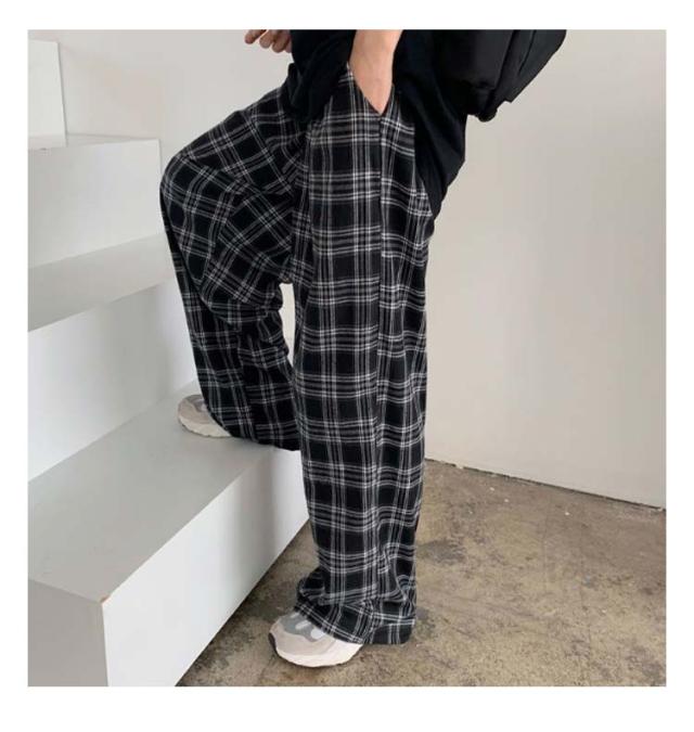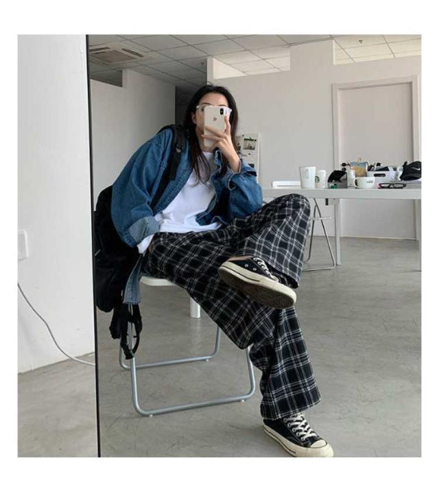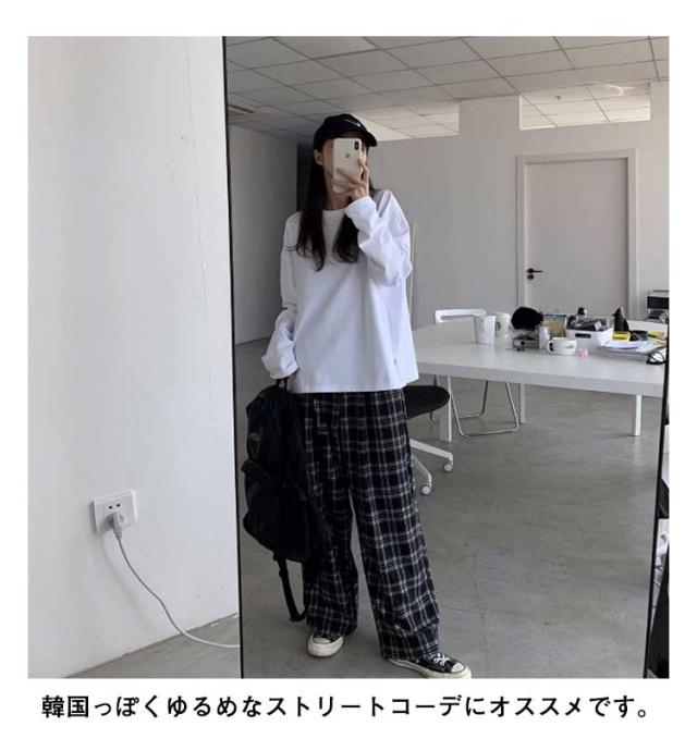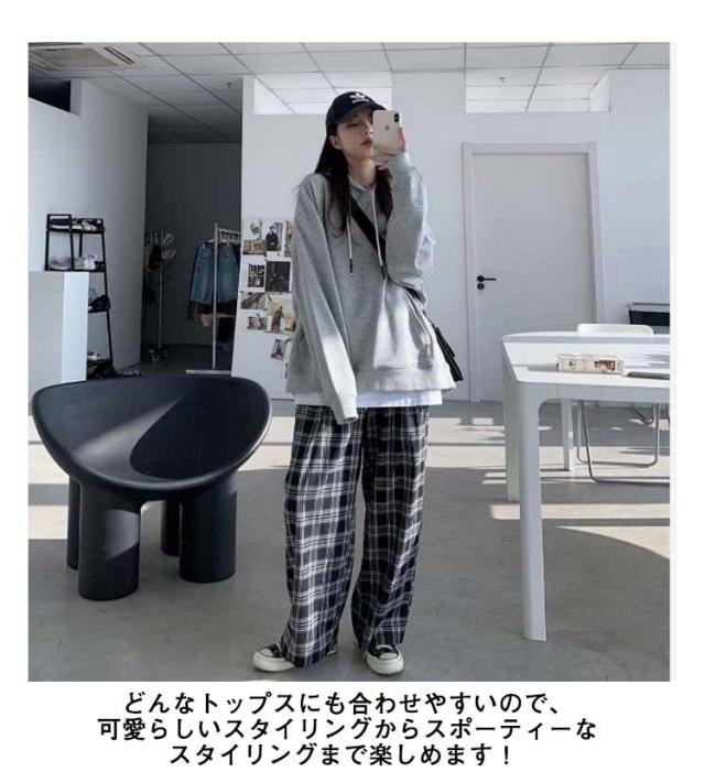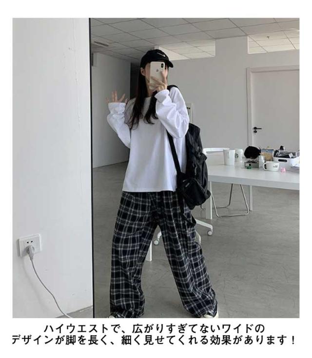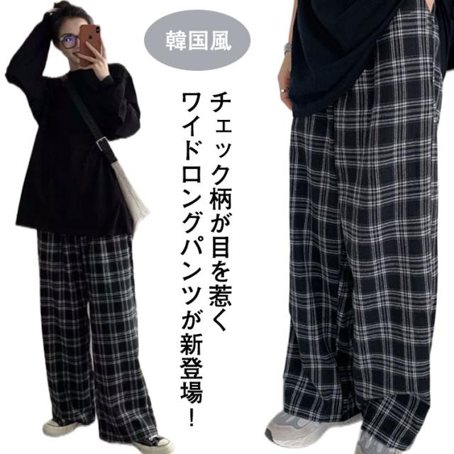 チェックワイドパンツ レディース パンツ レディースパンツ レディース ワイドパンツ ストレート ロングパンツ チェック 柄 チェックズボン ロング丈 女性 オーバーサイズ 韓国風