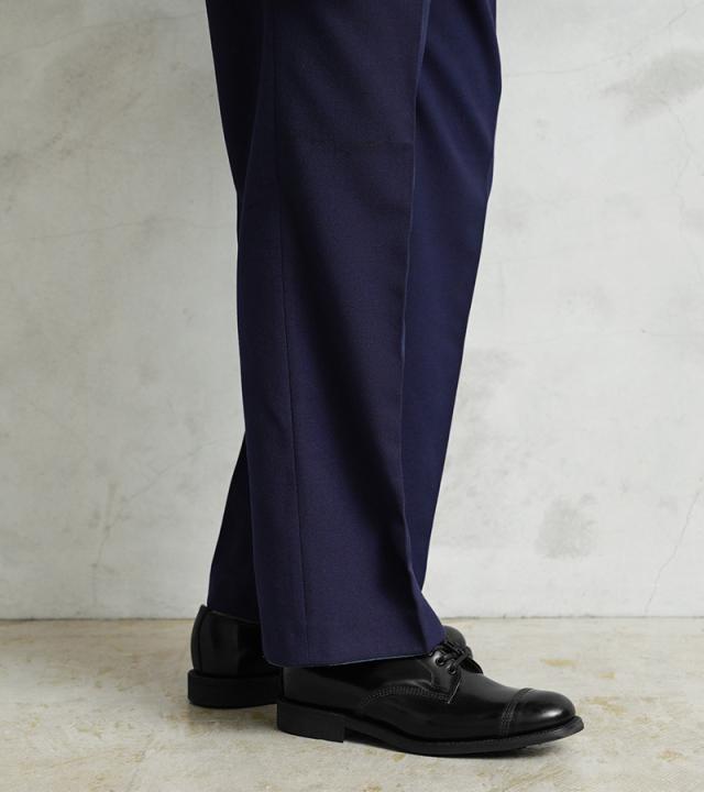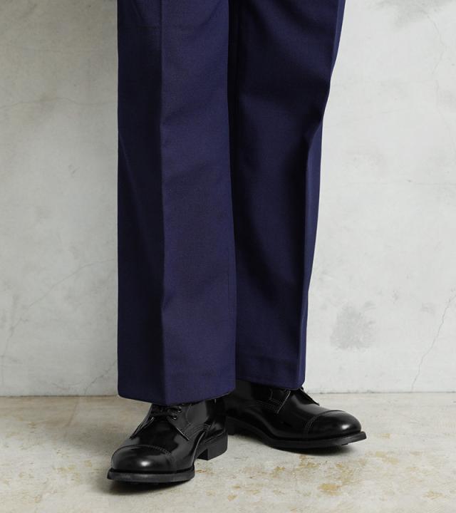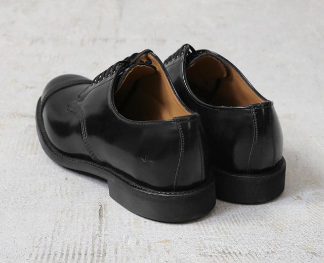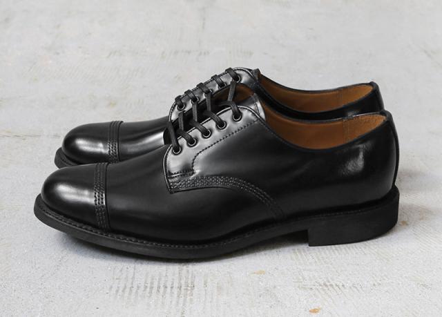 MOD(英国国防省)へのオフィシャルサプライヤーであるサンダース社が収蔵しているミリタリーシューズのアーカイブを基に、ラストから企画された日本限定のコレクション『MILITARY COLLECTION』より、長く愛されているベストセラーモデルのダービーシューズが登場しました。トウキャップと羽根部分に施されてる、現在では希少となった3本針ミシンを使用した別名ピューリタンステッチと呼ばれる、3本のステッチラインが特徴的。ヒール部分には、英国ならではのクラウンマークを表現する事が許されています。アッパーは、光沢感があり傷や汚れが付きにくく、比較的雨にも強いポリッシュドレザー仕様。