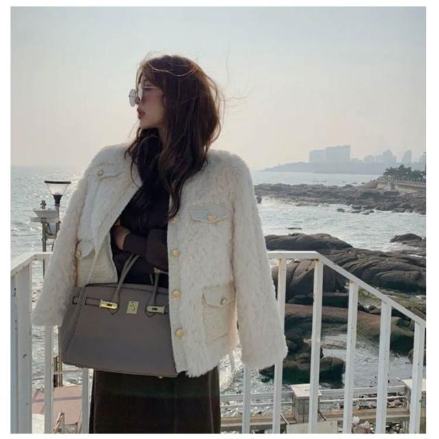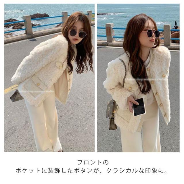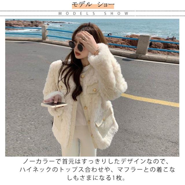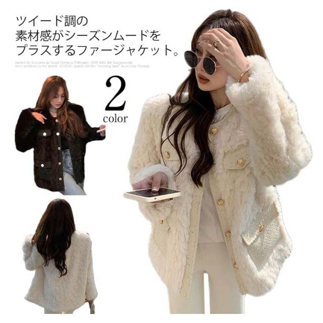 ファージャケット ツイードジャケット レディース 冬 ファーコート 長袖 ショート丈 ノーカラー ジャケット 羽織り 上着 暖かい フェイクファー ジャケット 防寒 アウター コート 上品 エレガント 入園式 卒園式 入学式 卒業式 フォーマル カジュアル オフィス 結婚式 秋冬