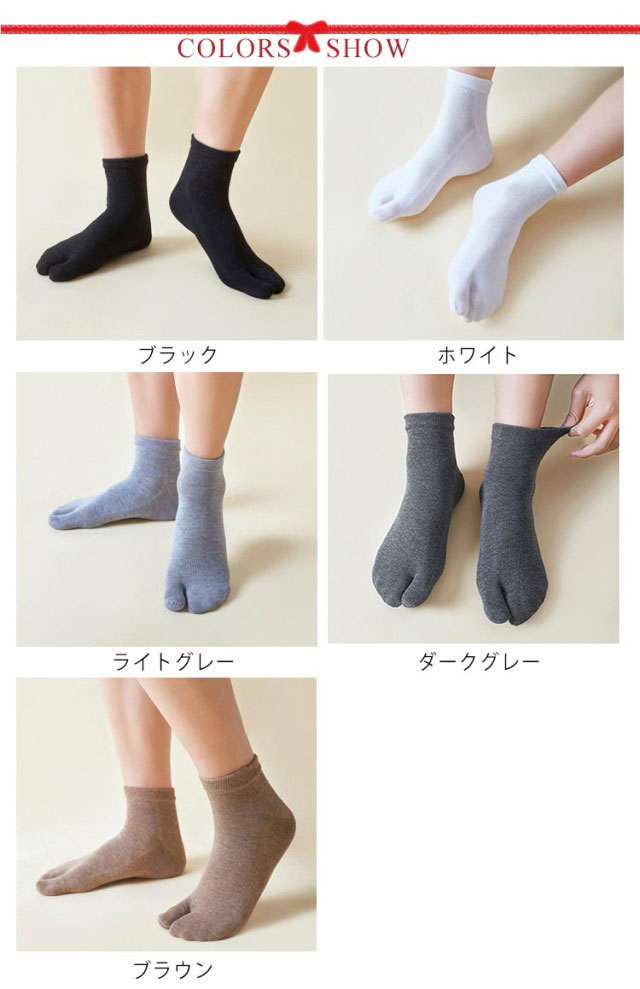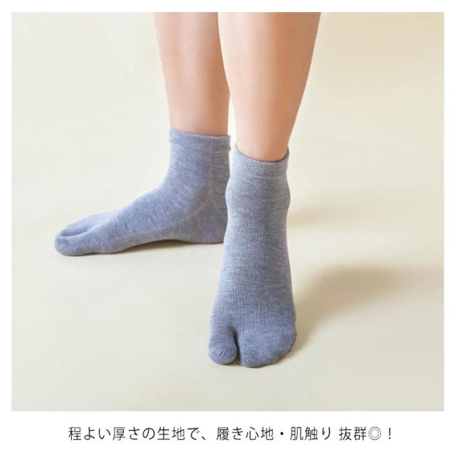 | シンプルなデザインで普段用や学校用としても使える、無地の足袋ソックス2足セット♪ 足袋ソックスは5本指ソックスと比べても非常に履きやすくなっています! また親指が独立しているため窮屈感が少なく安定した履き心地! 程よい厚さの生地で、履き心地・肌触り 抜群◎! | |