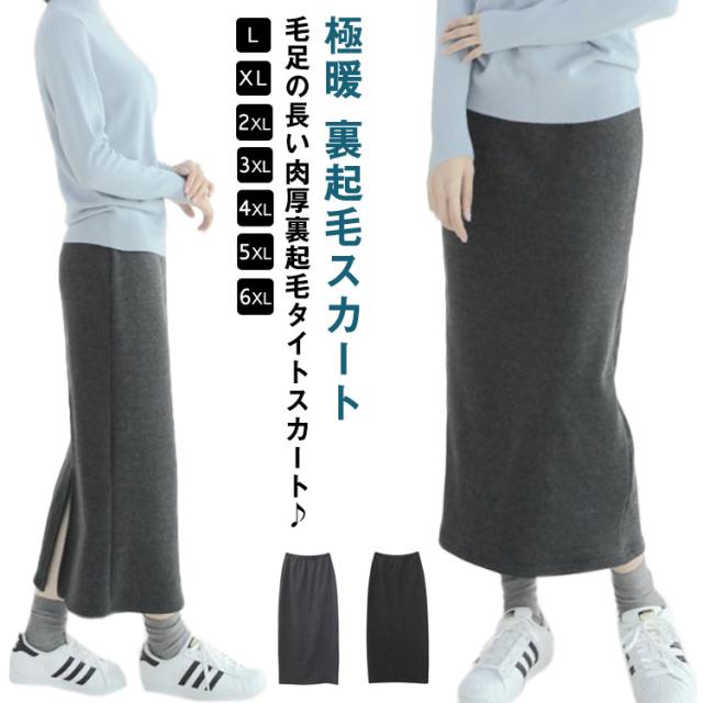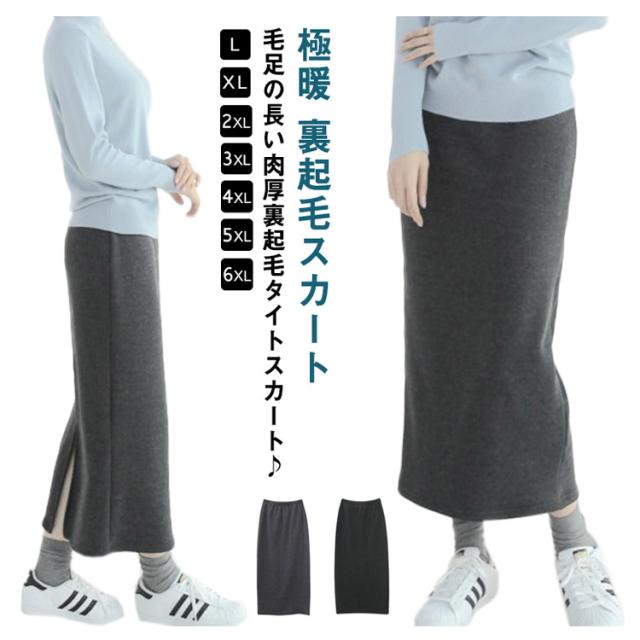 あったか裏起毛 タイトスカート 大きいサイズ マキシスカート ロング丈 スウェット スカート バックスリット入り 送料無料 極暖 秋冬 寒さ 冷え対策 裏ボア 厚手 ペンシルスカート ストレッチスカート 美脚 ぽかぽか 暖かい ひざ下 Iライン