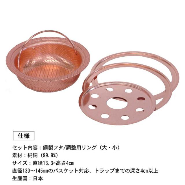 浅型銅バスケット(フタ・リング付き) 排水口水切りカゴ バスケット 純銅 シンク 日本製 ![]() ![]() ![]() ![]() ![]() ![]() | ||||