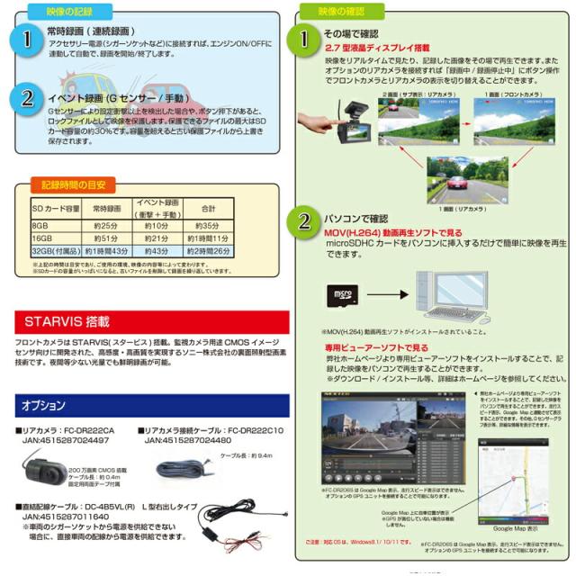 GPS搭載 1カメラ ドライブレコーダー FC-DR206S PLUS(W) ドライブレコーダー ドラレコ カメラ 事故記録 FullHD HDR GPS 速度超過警報 走行軌跡 ![]() ![]() ![]() ![]() | ||||