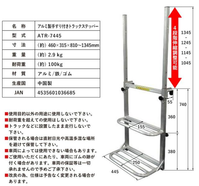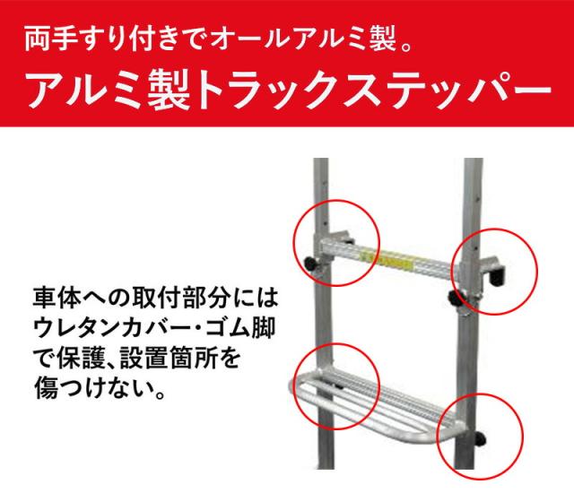 アルミス アルミ製手すり付きトラックステッパー ATR-7445 オールアルミ製で軽くて錆びにくい トラックあおり掛け専用 アルミ製トラック用ステッパー トラック用 荷台はしご 2段タイプ トラック用はしご ![]() ![]() | ||||