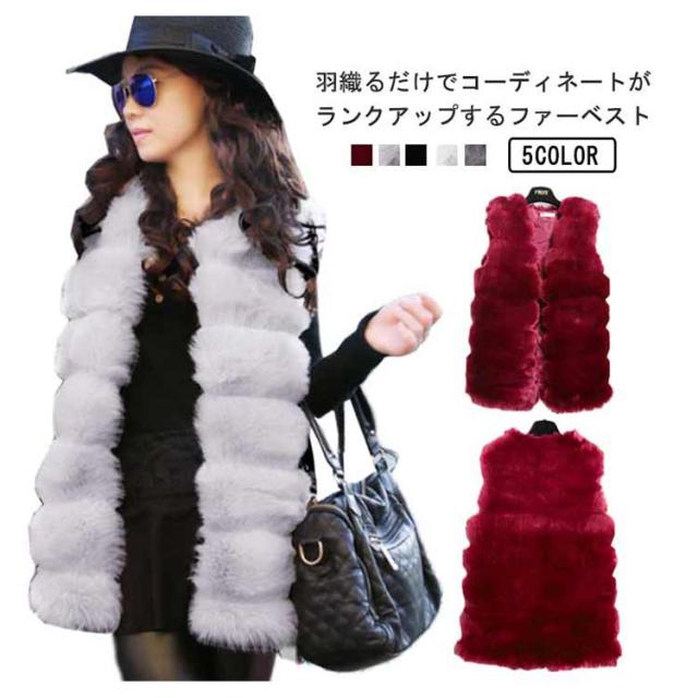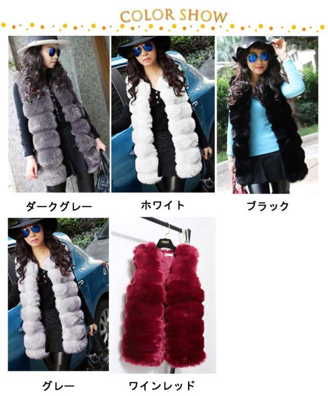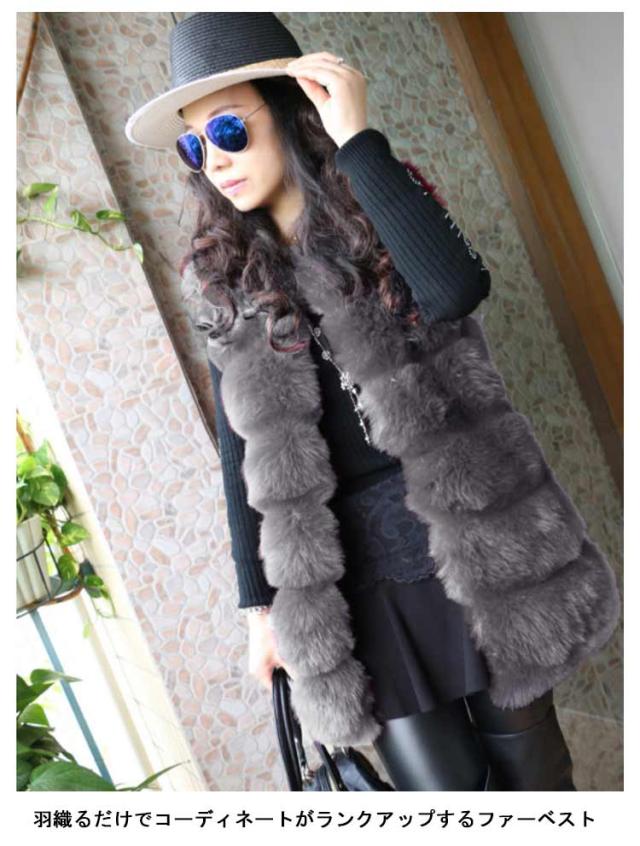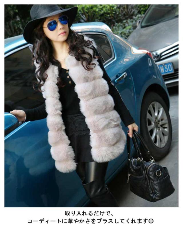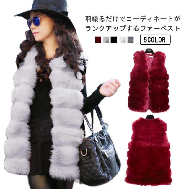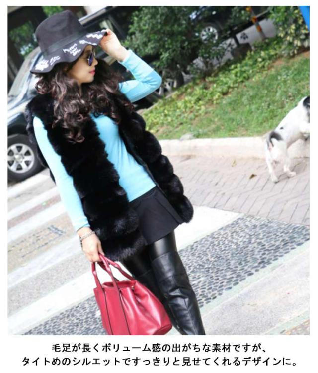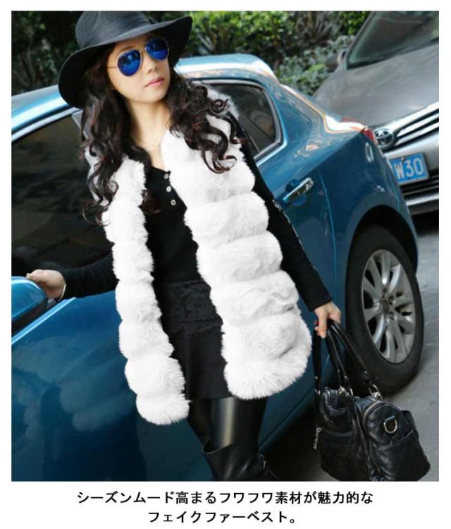 ファーベスト レディース フェイクファー ジレ ミドル丈 ノーカラージャケット ファージャケット ノースリーブ レイヤード 重ね着 羽織 秋 冬 春 エコファー ふわふわ もこもこ きれいめ おしゃれ 30代 40代 50代 ホワイト ブラック 【送料無料】