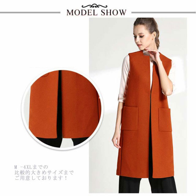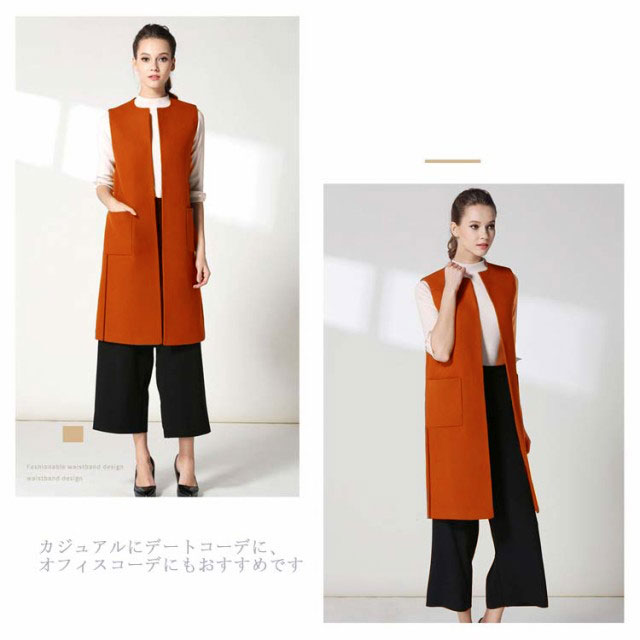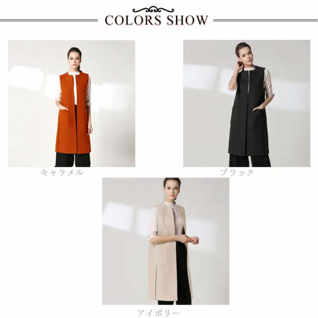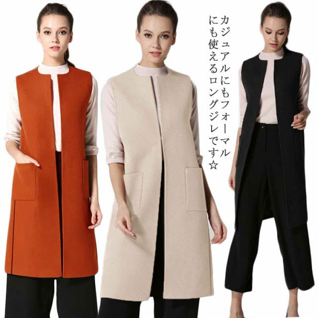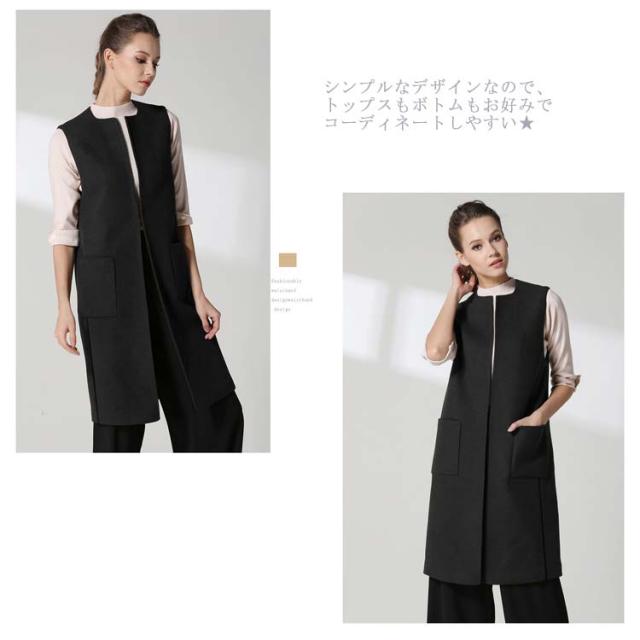 ジレ ロングジレ ロングベスト ベスト レディース カジュアルコート トレンチベスト ロング丈 スーツベスト ノーカラー アウター 無地ベスト フォーマル ビジネス アウター 上着 厚手 通勤 大きいサイズ 春 夏 秋 冬 エレガント シンプル OL ママ 30代 40代 50代 送料無料