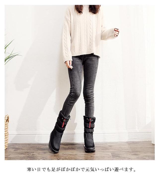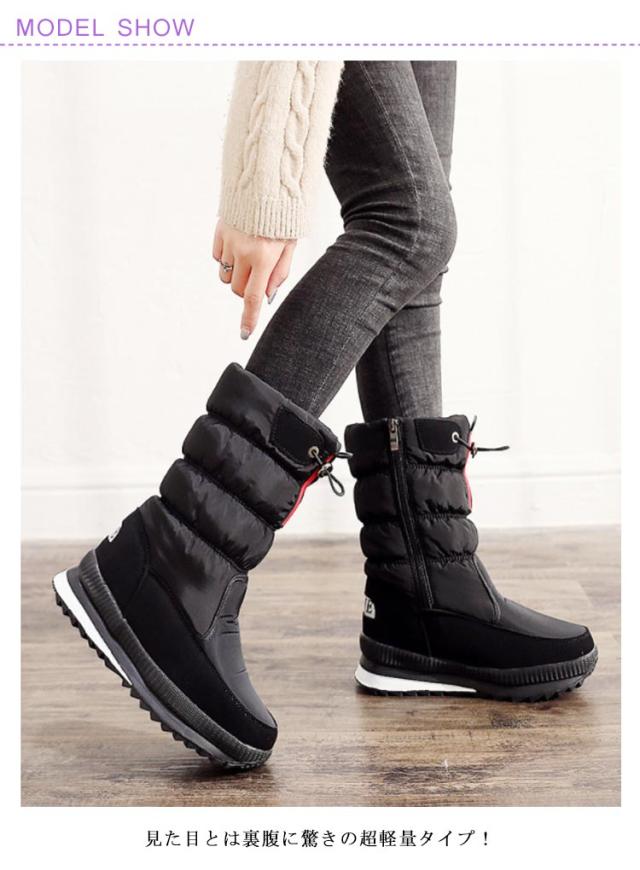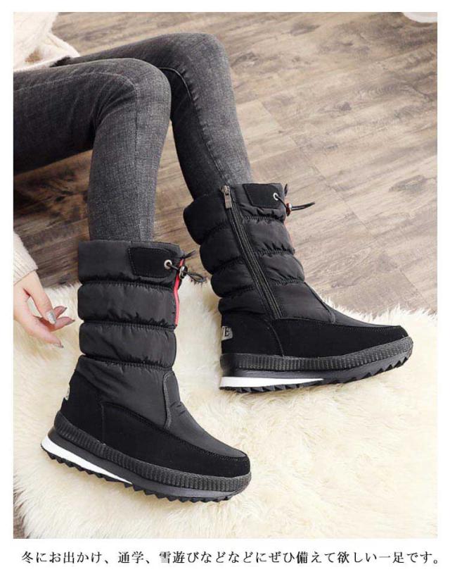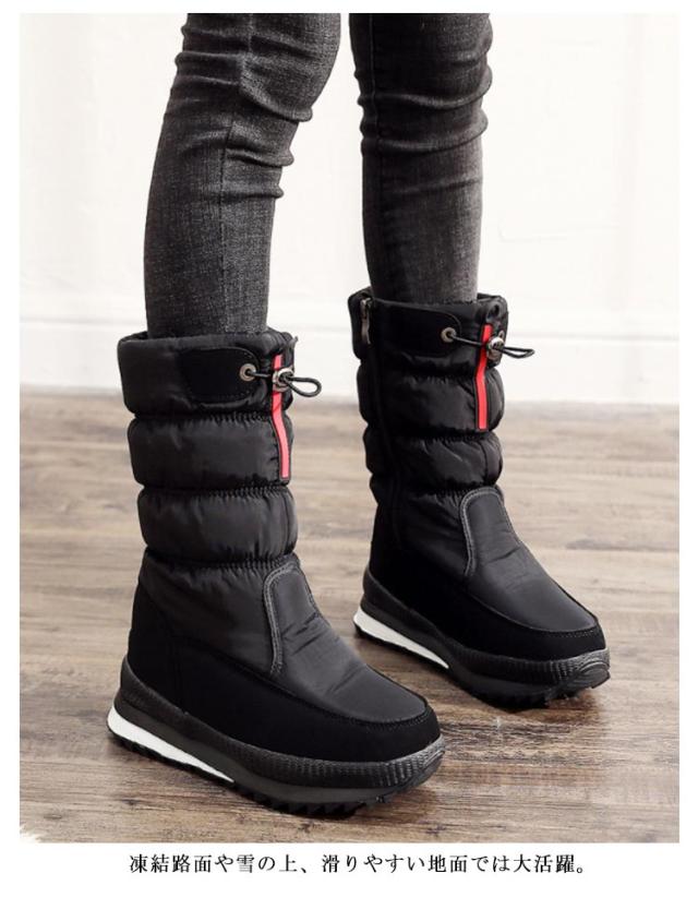 スノーブーツ レディース 無地 防水 大きいサイズ ウインターブーツ 軽量 防寒 雪道 防滑 滑りにくい 滑り止め ミドルブーツ スノーシューズ黒 雪遊び アウトドア あったか 裏起毛 雪靴綿靴 22.5cm-26.0cm