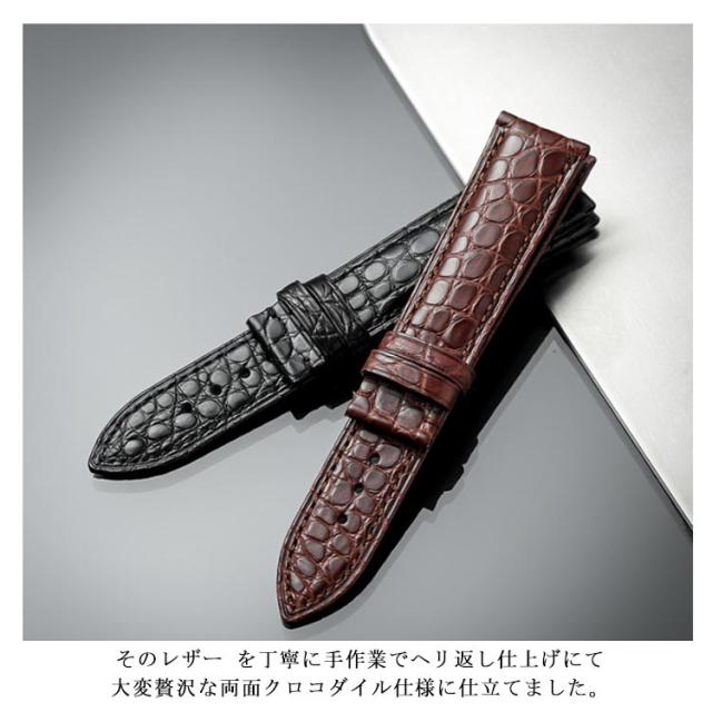 クロコダイル 両面クロコダイル クロコベルト 時計ベルト クロコ時計ベルト Dバックル用 22mm-18mm (SEIKO セイコー PATEK PHILIPPE パテックフィリップ OMEGA オメガ オーデマピゲ Piaget ピアジェ)