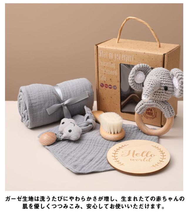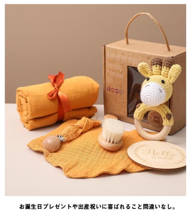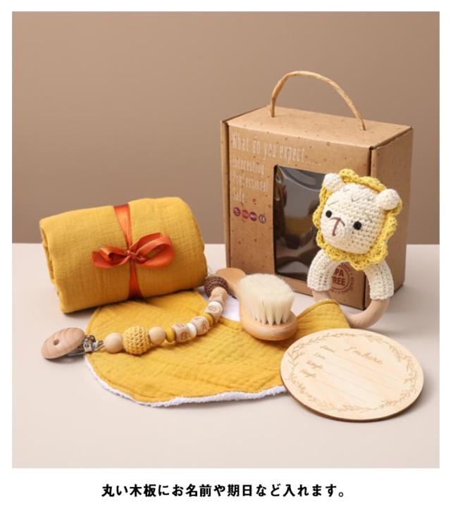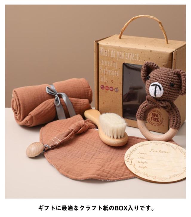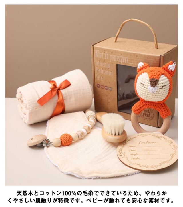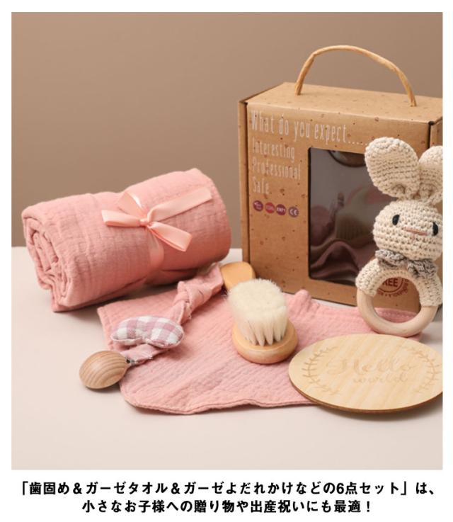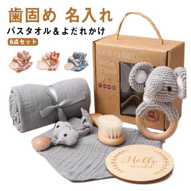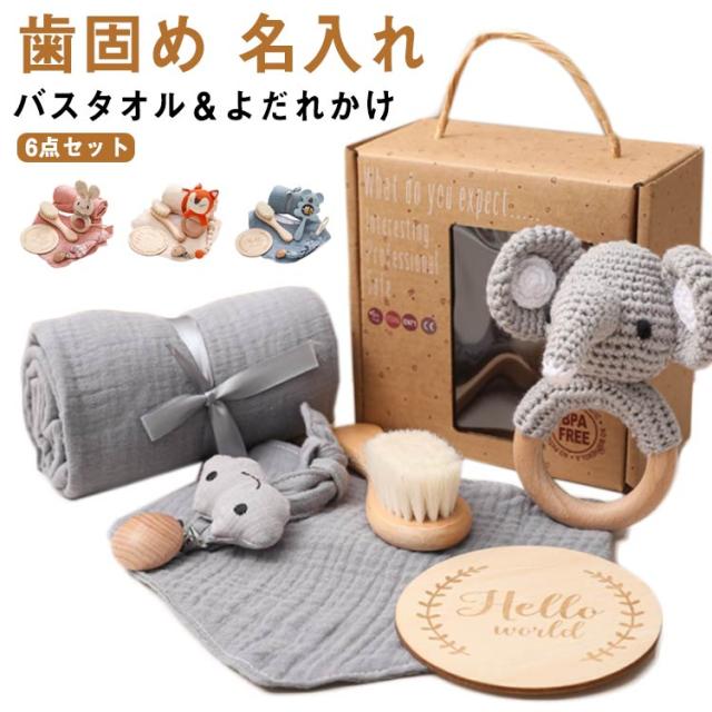 出産祝い ギフトセット 6点セット ガーゼタオル バスタオル よだれかけ ベビー 赤ちゃん 歯固め 歯がため ぬいぐるみ あみぐるみ 毛糸 木製 おもちゃ 玩具 男の子 女の子 名入れ マタニティ クリスマス 100日 かわいい 【送料無料】