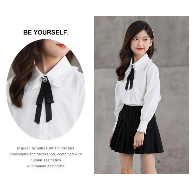ブラウス 女の子 Yシャツ リボン付き フォーマル 子供服 送料無料 ホワイトシャツ 長袖 スーツインナー キッズ 子供スーツ ジュニア 大きいサイズ 入学式 卒業式 フォーマル 制服 発表会