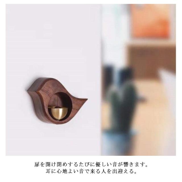 ドアベル ドアチャイム 玄関 木製 ドアベル 鐘 チャイム 呼び鈴 鳥 ウッド 天然木 真鍮 ドア鈴 おしゃれ ドア 扉 引き戸 開き戸 マグネット 磁石 粘着 優しい音 冷蔵庫 店舗 ホーム ナチュラル インテリア 雑貨 引っ越し祝い 新築祝い 贈り物 ギフト プレゼント ブラウン