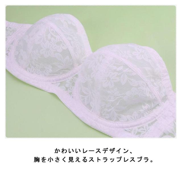 胸を小さく見える ブラジャー 単品 ストラップレス ブラ ワイヤー入り 大きいサイズ ずれない ブラジャー ブラ 紐なしブラ 夏 チューブトップ レースブラ 薄手 下着 脇肉スッキリ 垂れ防止 結婚式 ドレス ダンス 肩紐付き