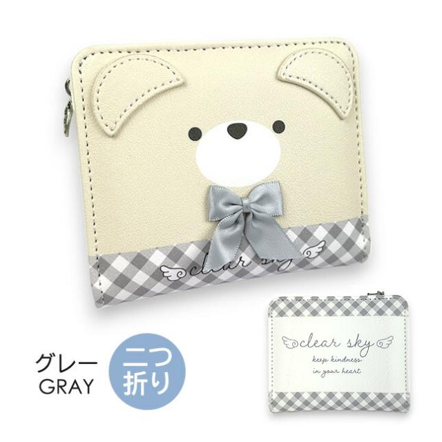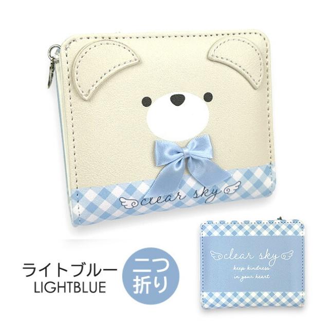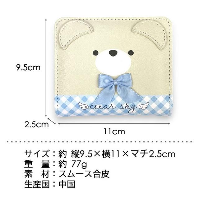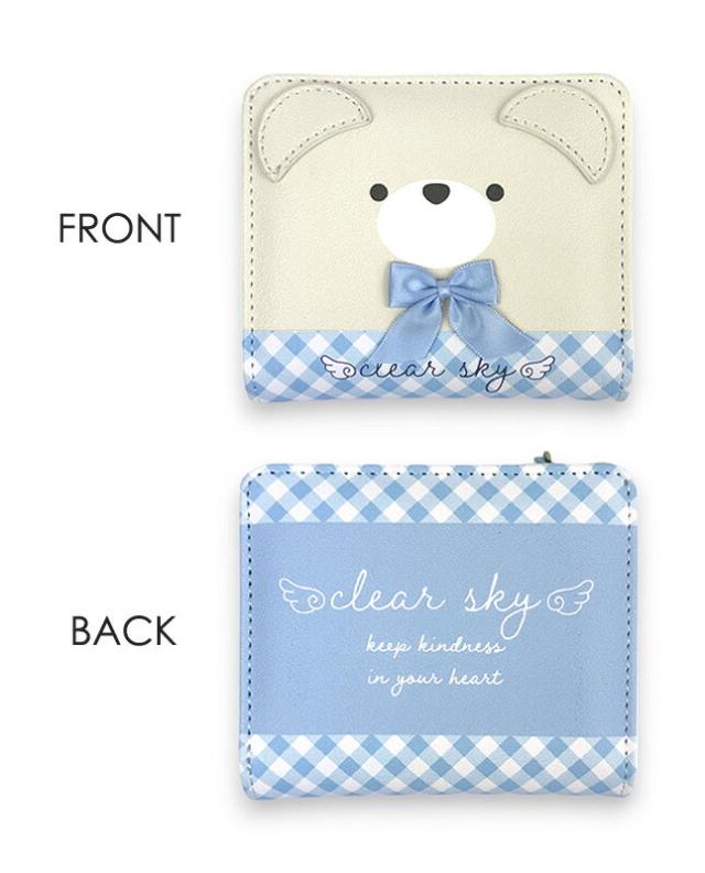 リボンをつけたクマフェイスがかわいい二つ折り財布。