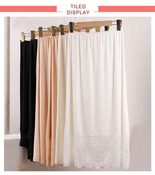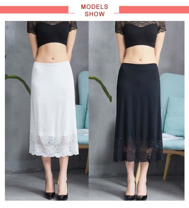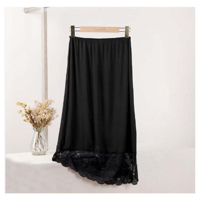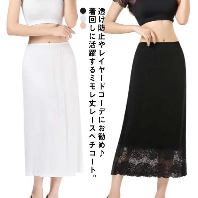 | 透け防止やレイヤードコーデにお勧め♪着回しに活躍するミモレ丈レースペチコート。 裾レース付きタイプと無地シンプルなタイプ展開で、コーディネートを上品にまとめてくれます。 ウエストは良く伸びるゴム仕様なので 苦しさもなく、楽ちんにご着用頂けます。 伸縮性に富んだソフトな生地で、着心地が抜群。薄手でかさばらず、一枚プラスすれば、更に品の良いスタイルに。 カラーはお手持ちのアイテムに合わせやすいブラック、ホワイト、ベージュの3カラーをご用意しました。 | |