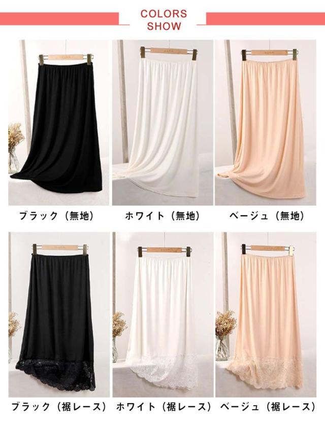 | 色 | ブラック(裾レース) ホワイト(裾レース) ベージュ(裾レース) ブラック(無地) ホワイト(無地) ベージュ(無地) |