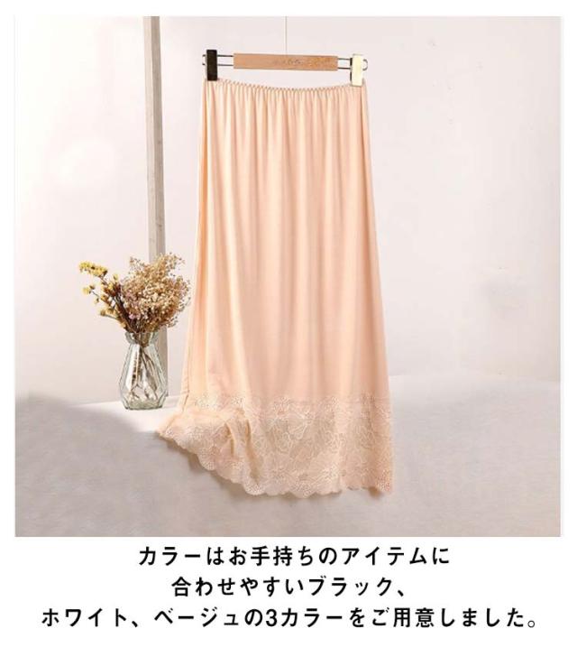 選べる2タイプ 裾レース ペチスカート 見せ ペチコート スカート インナースカート 透け防止 レースペチコート アンダースカート 静電気防止 フォーマル ドレスインナー 見せる 透けない 抜け感 ボトムス 大人 20代 30代 40代 送料無料 白 黒