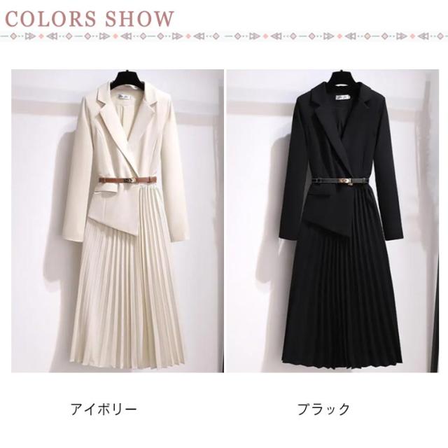プリーツワンピース ママスーツ レディース フォーマル スーツ セレモニースーツ ジャケット スーツワンピース 切り替え べルト付き 膝下 ミモレ丈 入園式 入学式 卒園式 卒業式 スーツ 七五三 お宮参り 学校行事 発表会 オフィス 結婚式 上品 エレガント 通勤 送料無料
