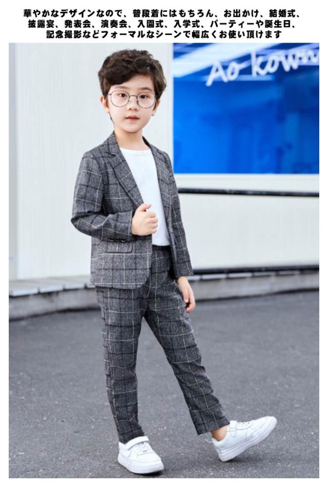 | 90-170cm!おしゃれなキッズスーツセット。 丈夫で通気性があり、耐久性があるので、長く使いたい人におすすめです。心地よい素材で、動きやすくてシワになりにくい本格的な子供スーツです。 華やかなデザインなので、普段着にはもちろん、お出かけ、結婚式、披露宴、発表会、演奏会、入園式、入学式、パーティーや誕生日、記念撮影などフォーマルなシーンで幅広くお使い頂けます。 | |