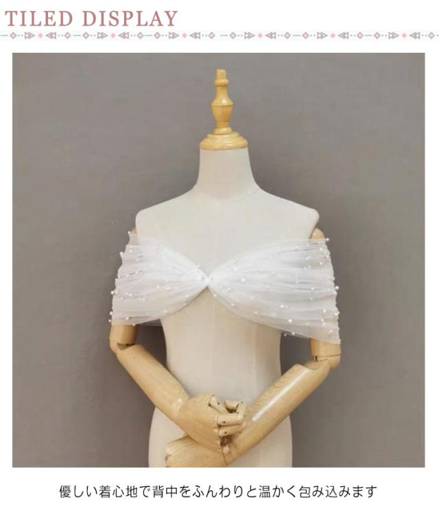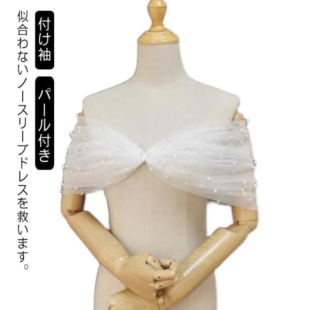送料無料 ウェディング ショール 付け袖 ボレロ パール付き アームドレス ストール アームレット アームカバー 二の腕 隠す 胸カバー 背中カバー 二の腕カバー ウェディングドレスアレンジ 花嫁 小物 白 オフホワイト チュール 二次会 披露宴 二次会 結婚式
