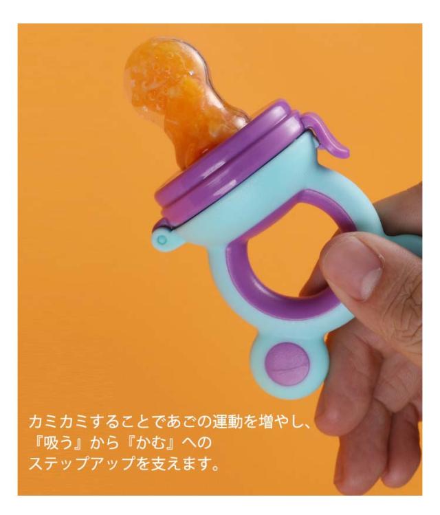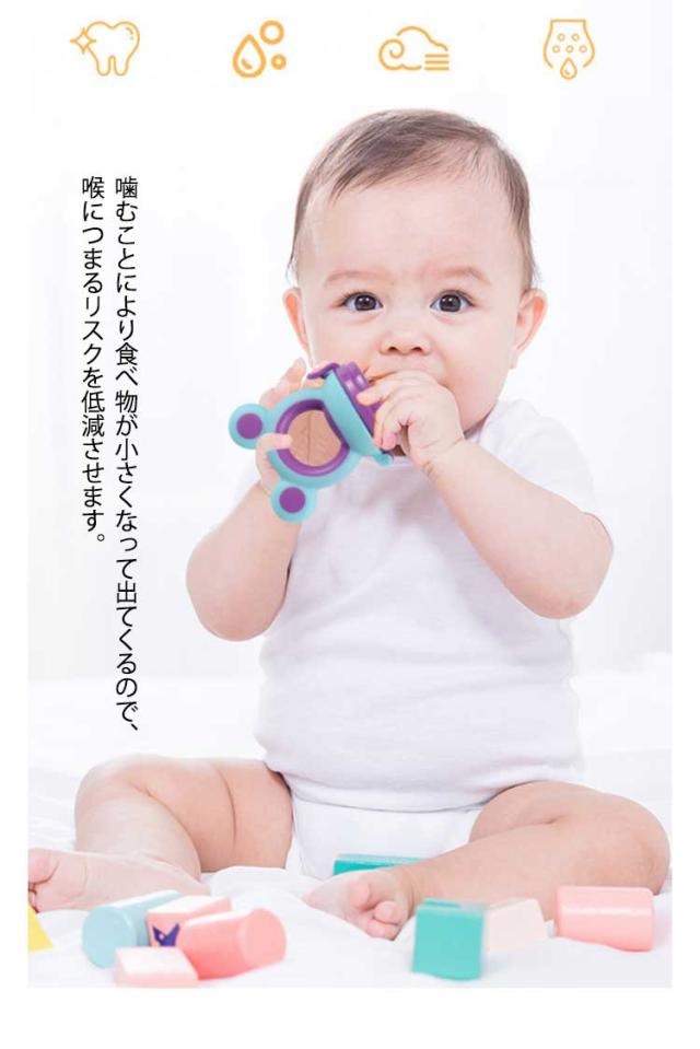 | 2個セット!赤ちゃんが離乳食を自分ペースで食べれる離乳食フィーダー! 噛むことにより食べ物が小さくなって出てくるので、喉につまるリスクを低減させます。 カミカミすることであごの運動を増やし、『吸う』から『かむ』へのステップアップを支えます。お手入れも簡単です。 使い方は簡単!果物やベビーフードを入れるだけ! くりかえし噛むことで脳への血液の循環を促し、脳細胞の活性化により赤ちゃんの健康的な成長を手助けします。 自分で食べることで自信がつき、自立を促します。 | |