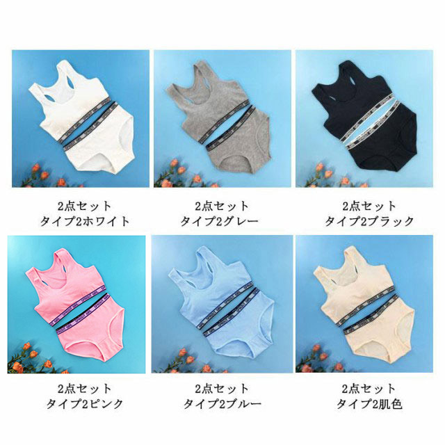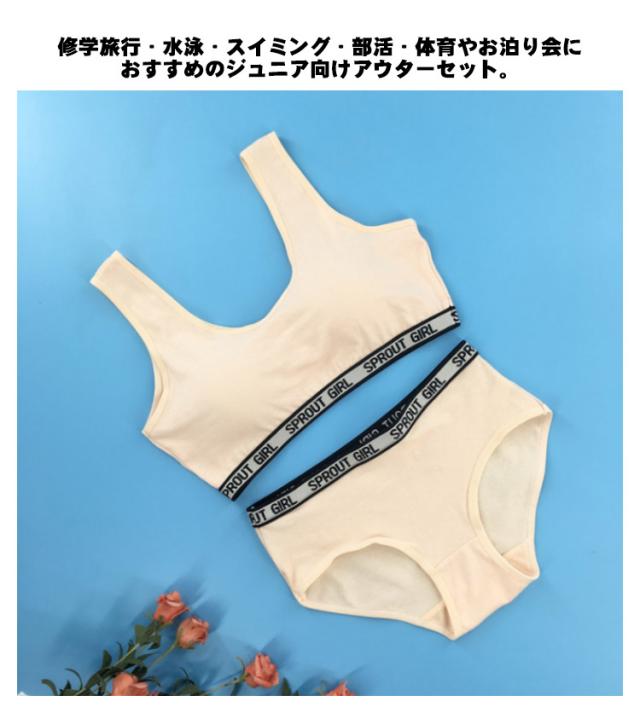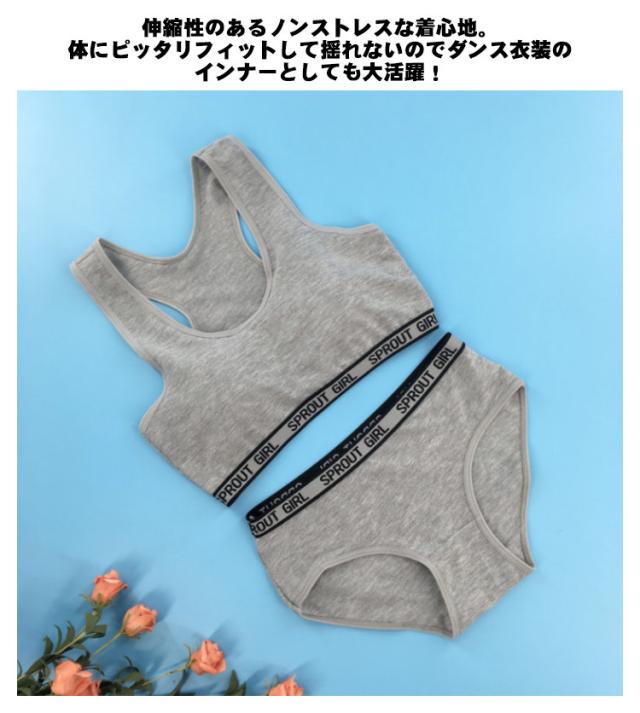 2点セット 上下セット キッズ 子供 ブラジャー ショーツ ジュニア 下着セット パッド付き ブラジャー カップ付き 大人 女の子 パンツ 肌着 インナー アンダーウェア ジュニアブラ スポーツブラ 中学生 小学生 下着 ガールズ 可愛い 綿 コットン 送料無料