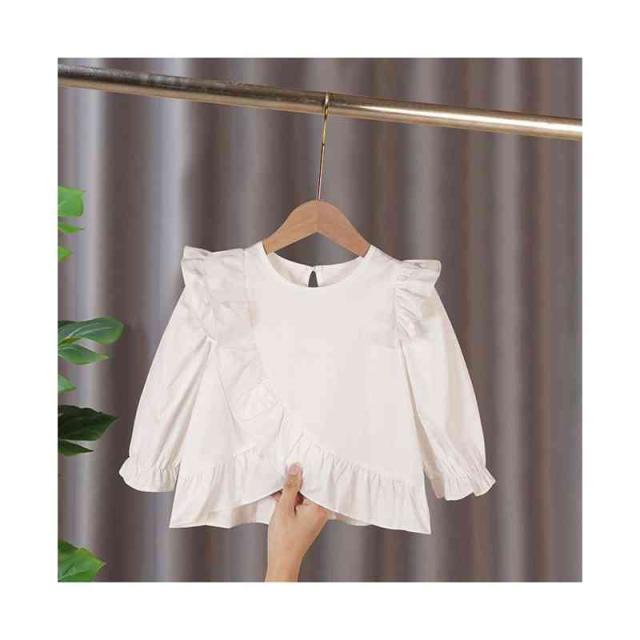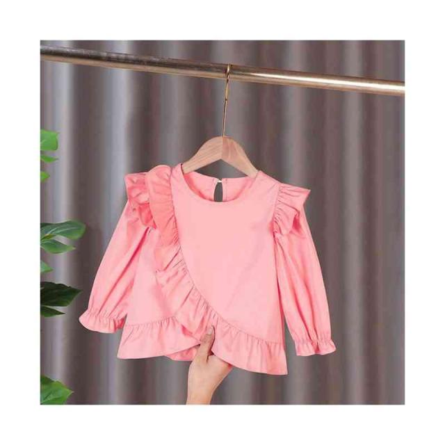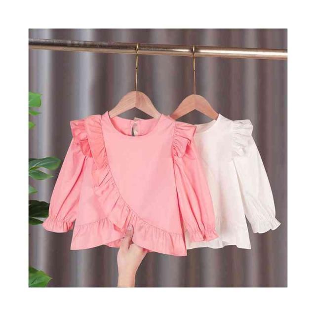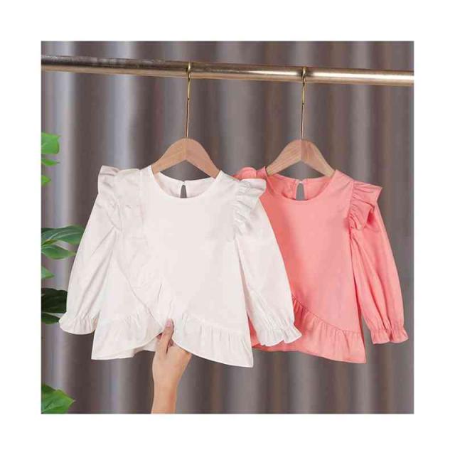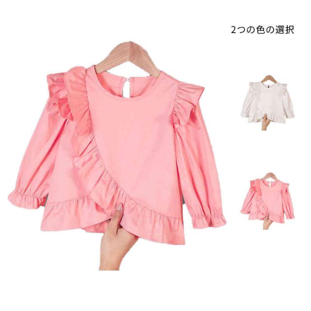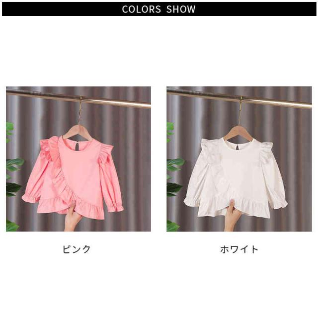 おしゃれブラウス キッズ 春秋 フォーマルブラウス フリルブラウス おしゃれ ショートブラウス 長袖 ブラウス トップス 子供ブラウス ジュニア 女の子 無地 可愛い シンプル カジュアルブラウス 女児 ゆったり 子供服 かわいい 送料無料