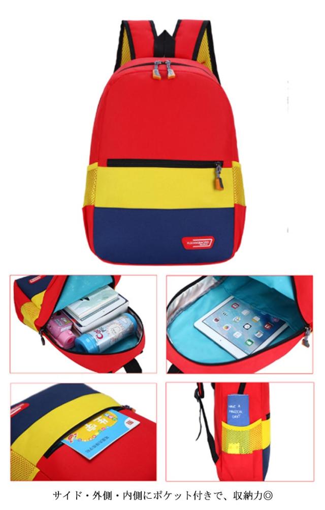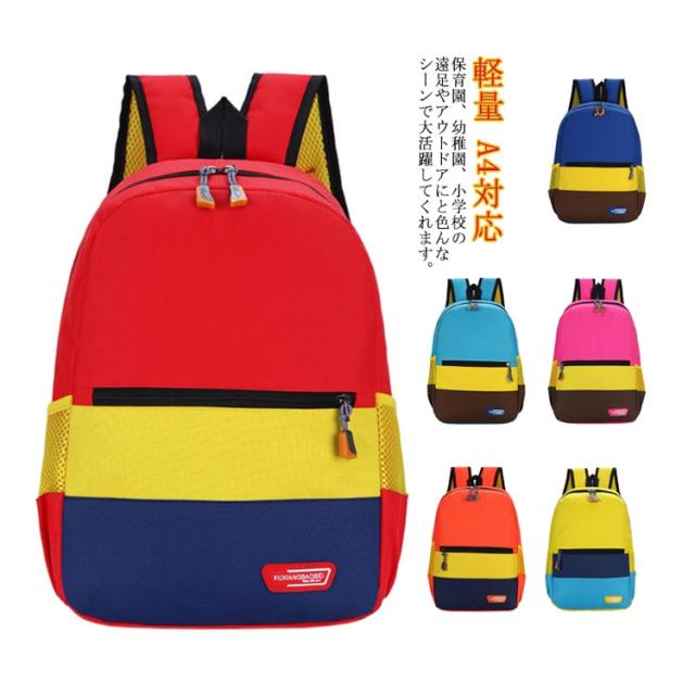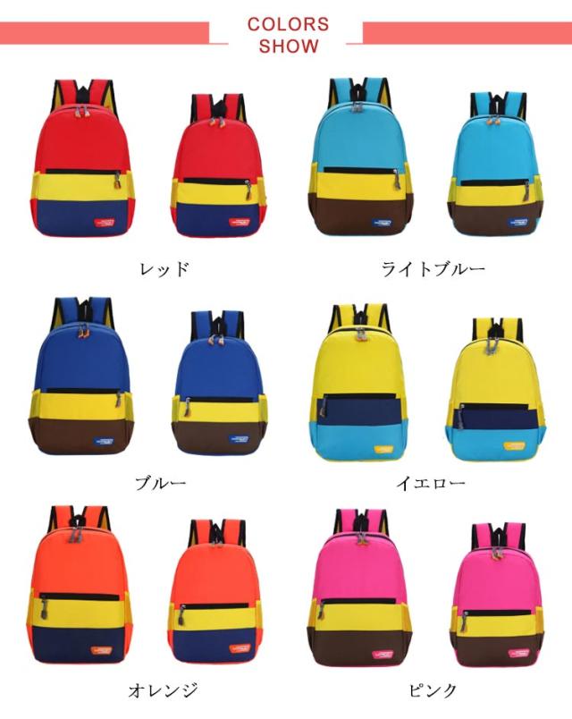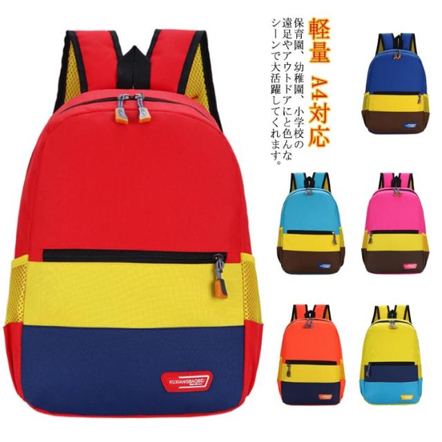 キッズ リュック バックパック 配色 こども 子供 リュックサック 男の子 女の子 通園バッグ 小学生 通学 入学 幼稚園 保育園 通園 遠足 キッズリュック 鞄 防災 かわいい カラフル 丈夫 軽量 A4対応 お出かけ アウトドア おしゃれ 送料無料