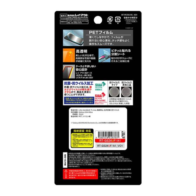Galaxy S24 Ultra フィルム 光沢 保護フィルム GalaxyS24Ultra SC-52E SCG26 ギャラクシー 指紋認証 対応 指紋防止 つやつや 抗菌 抗ウイルス 透明 液晶保護