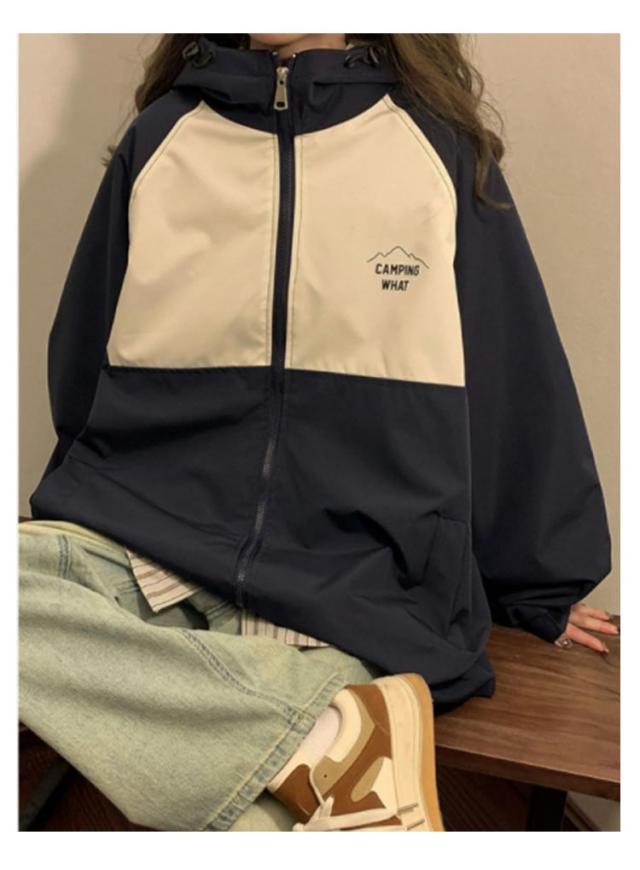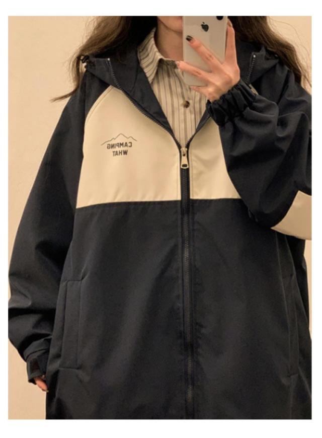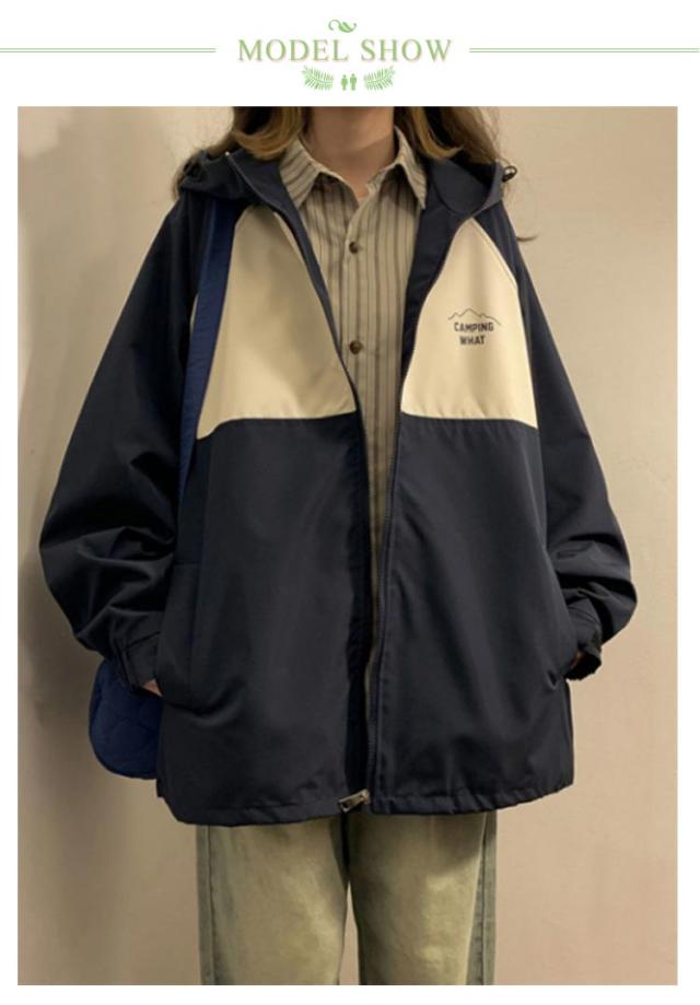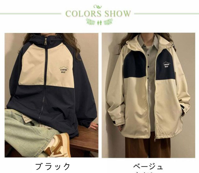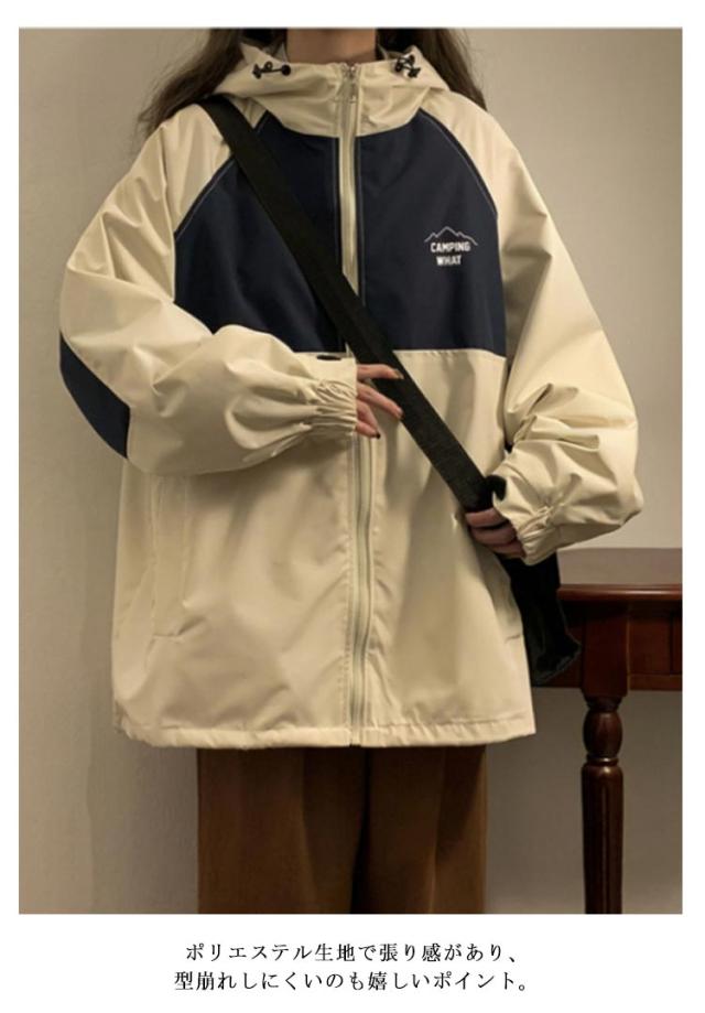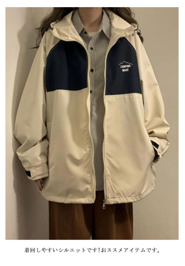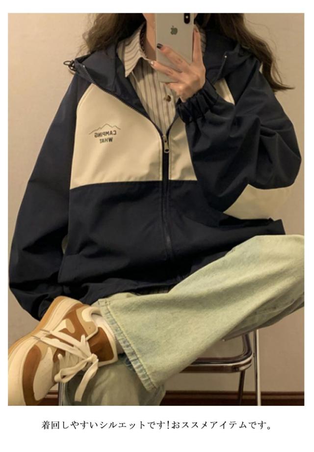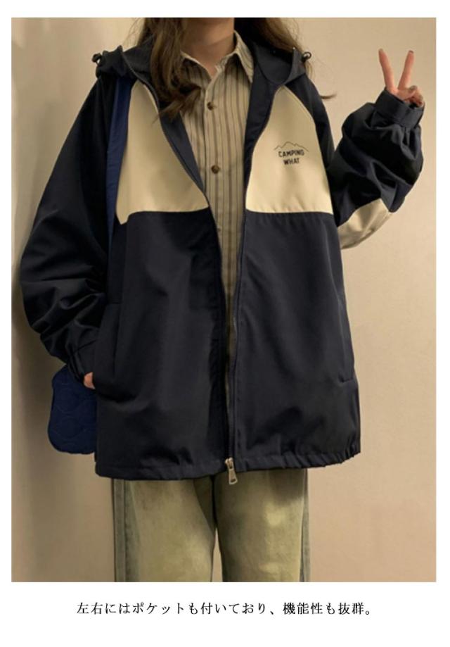 マウンテンパーカー ジップアップ ジャンパー レディース ジャケット パーカー ウインドブレーカー ブルゾン アウター フード付き カジュアル 長袖 ゆったり 切り替え 春秋 ストリート系 アウトドア 送料無料