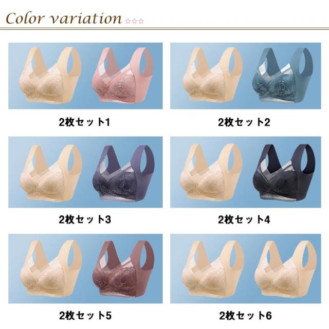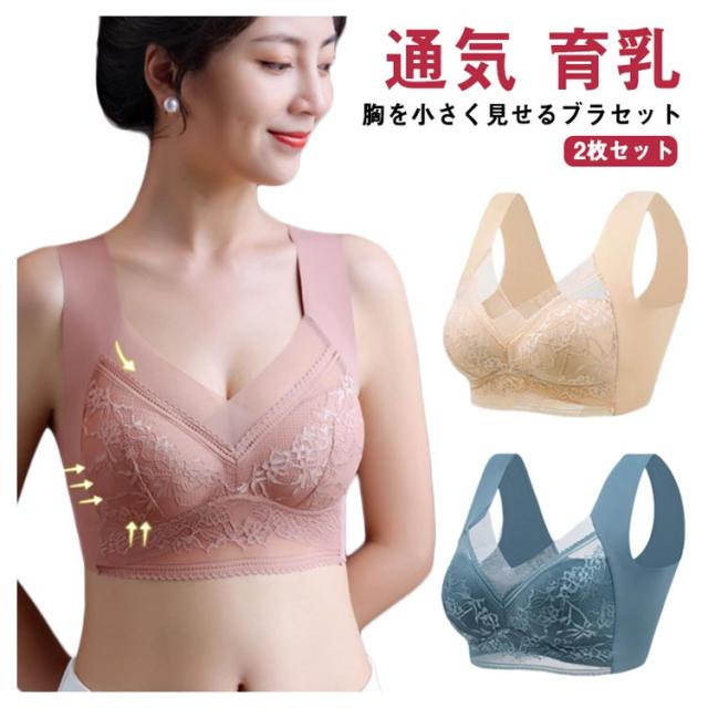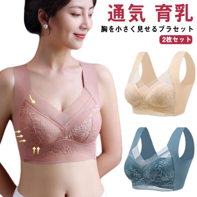 ブラジャー ノーワイヤー 胸を小さく見せるブラ 2枚セット 小さく見せるブラジャー ナイトブラ おしゃれ ブラ 通気 育乳 レース フルカップ 脇高 補正下着 脇肉 背中 スッキリ 下着 大きいサイズ 大きいサイズ 小胸 バストアップ ギフト プレゼント 送料無料