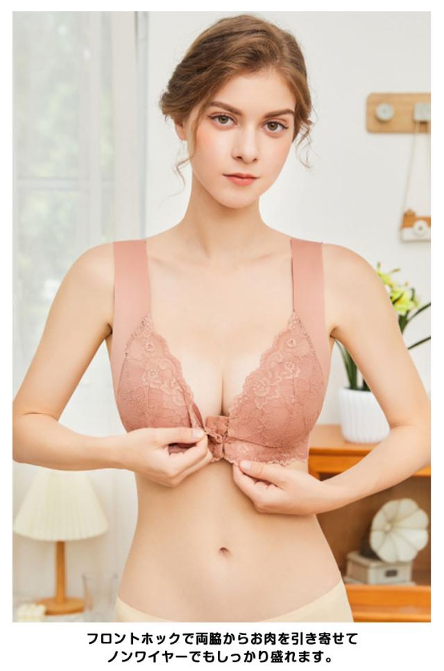 送料無料 ノンワイヤーブラ フロントホック 前開き ブラジャー 美胸 バストアップ ストレッチ フィット感 脇肉補正 スポーツブラ 幅広 脇高すっきり ナイトブラ インナー 下着 肌着 マタニティ 産前 産後 授乳 パッド付き 美胸