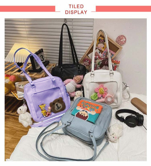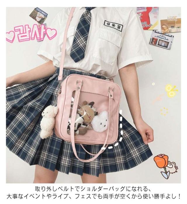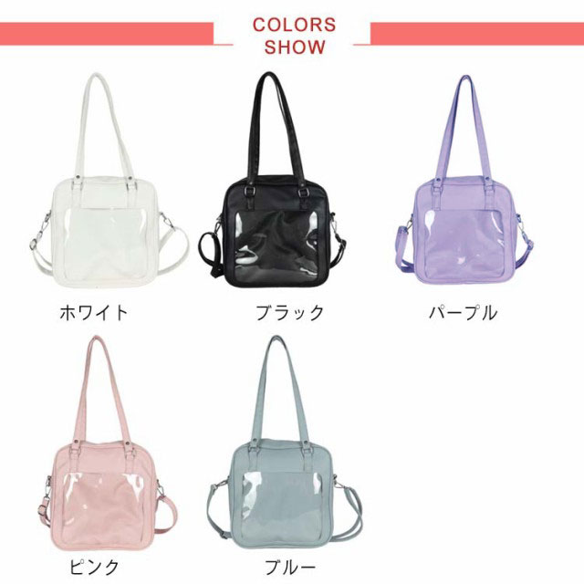 選べる5色 痛バッグ ショルダーバッグ 2way ハンドルバッグ トートバッグ 斜め掛け 痛バ 透明 ビニール 軽い 便利 中学生 高校生 通学 推し 5色選べる 可愛い痛バッグ かわいい クリアバッグ ビニールバッグ