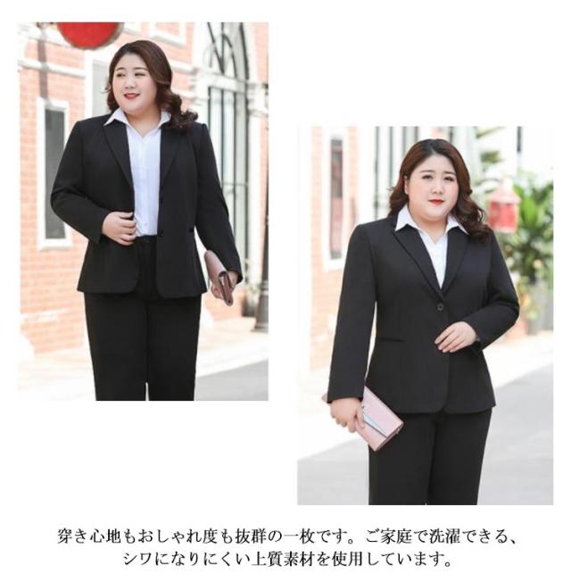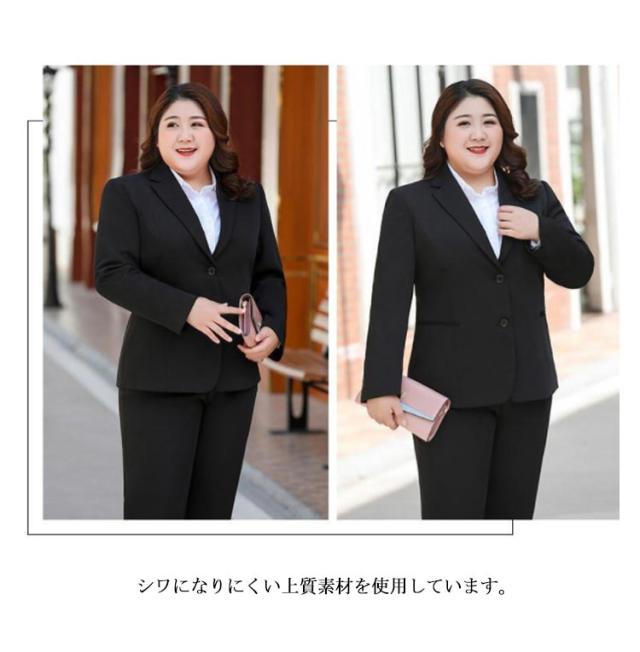 2点セット 大きいサイズ ビジネススーツ レディース 洗える パンツスーツ ストレッチ セットアップ 通勤 リクルート 就活 OL オフィススーツ 事務服 ビジネス リクルートスーツ ジャケット ズボン 転職 結婚式 面接 卒業式 フォーマル 黒 ママスーツ ブラック 春 夏 秋