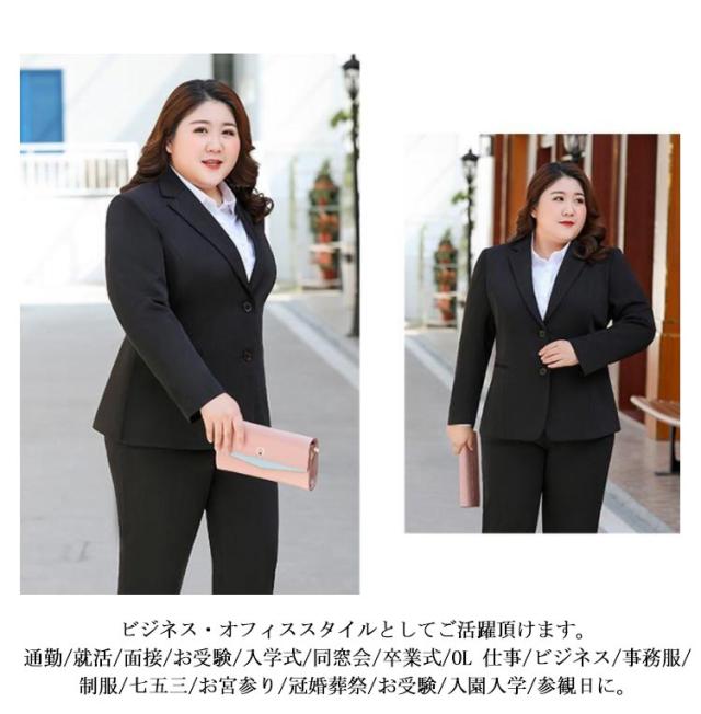 | L 〜 8XL 社会人にも学生にも定番の2点セットパンツスーツ 2点セットスーツ:パンツ+ジャケット。スーツは清潔感が大切!自分に合ったサイズを美しく着ることで心の美しさを引き出します☆ 穿き心地もおしゃれ度も抜群の一枚です。ご家庭で洗濯できる、シワになりにくい上質素材を使用しています。 シワになりにくい上質素材を使用しています。 着やすくしっかりした生地。細部までこだわった縫製技術。 ビジネス・オフィススタイルとしてご活躍頂けます。通勤/就活/面接/お受験/入学式/同窓会/卒業式/OL 仕事/ビジネス/事務服/制服/七五三/お宮参り/冠婚葬祭/お受験/入園入学/参観日に。 | |