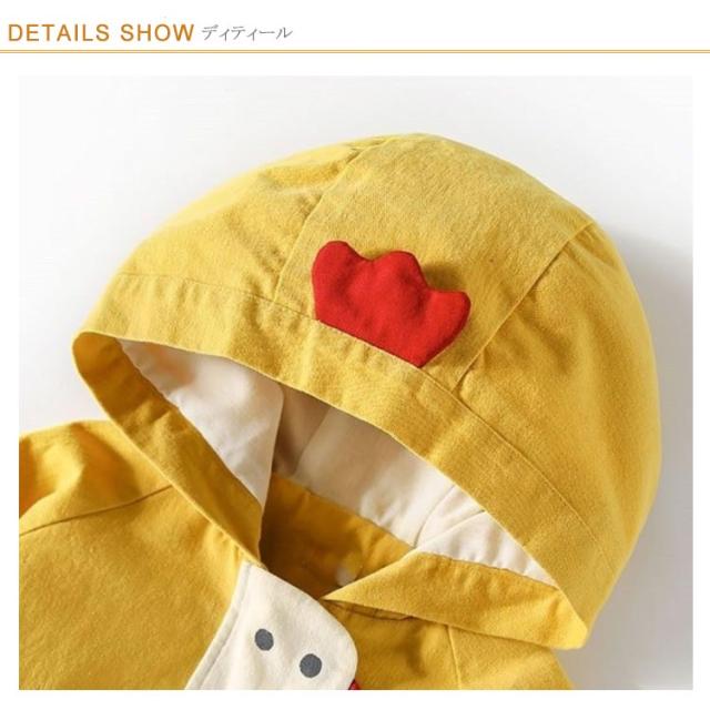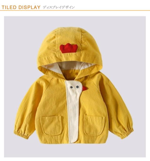 | 80-130cm!可愛い子ども用フード付きアウター。 しっかりとした素材で防風効果抜群。 大きめなフード付き、フロントポケットも配置して、機能性パッチリ。 普段着はもちろん、通園通学にもぴったりな一枚。 | |