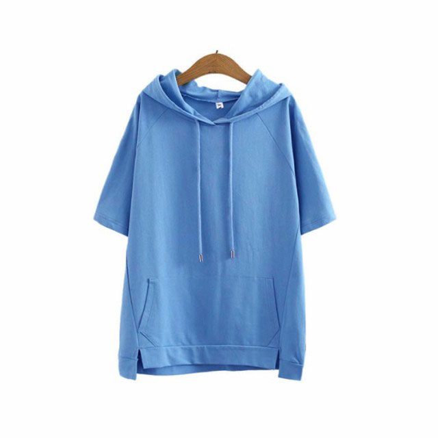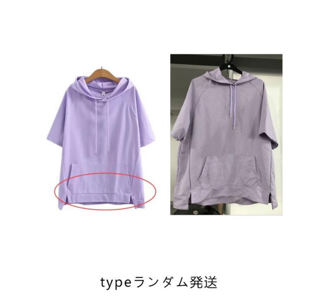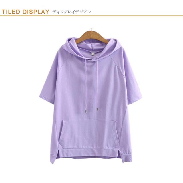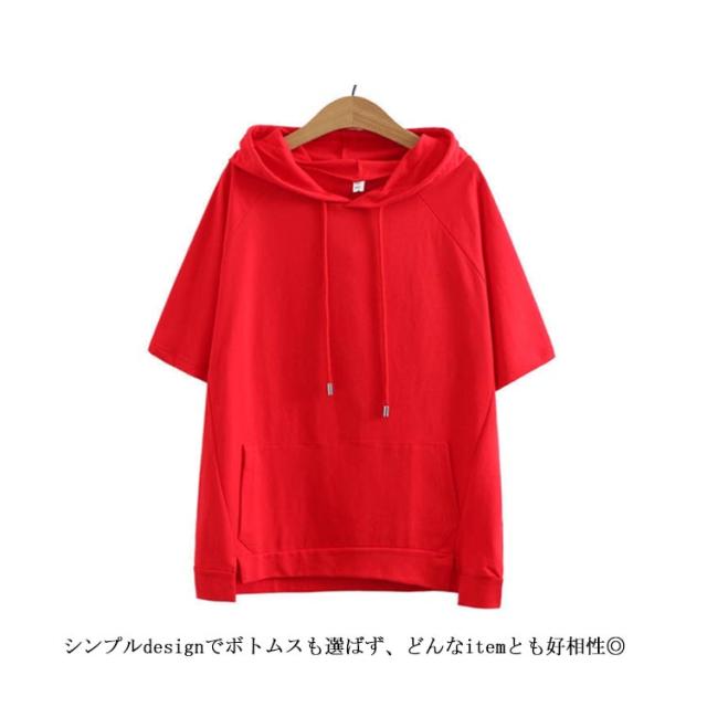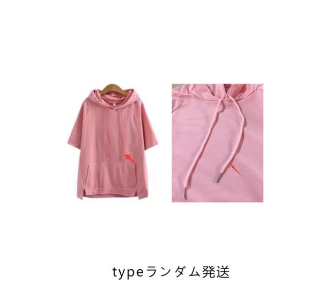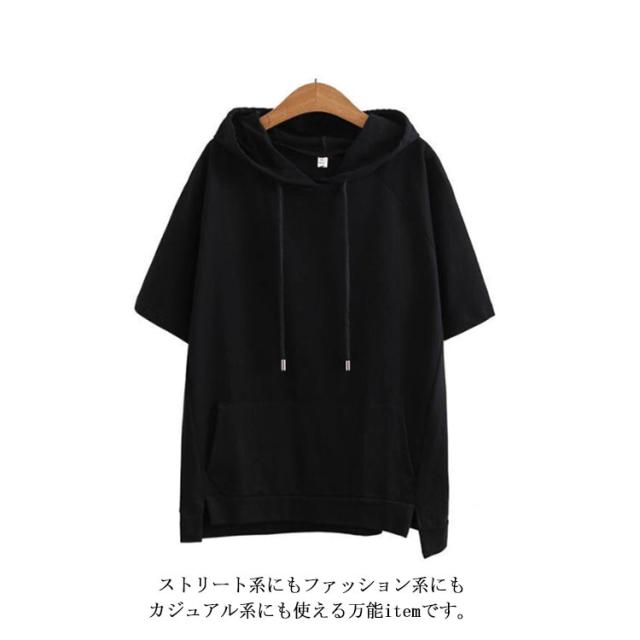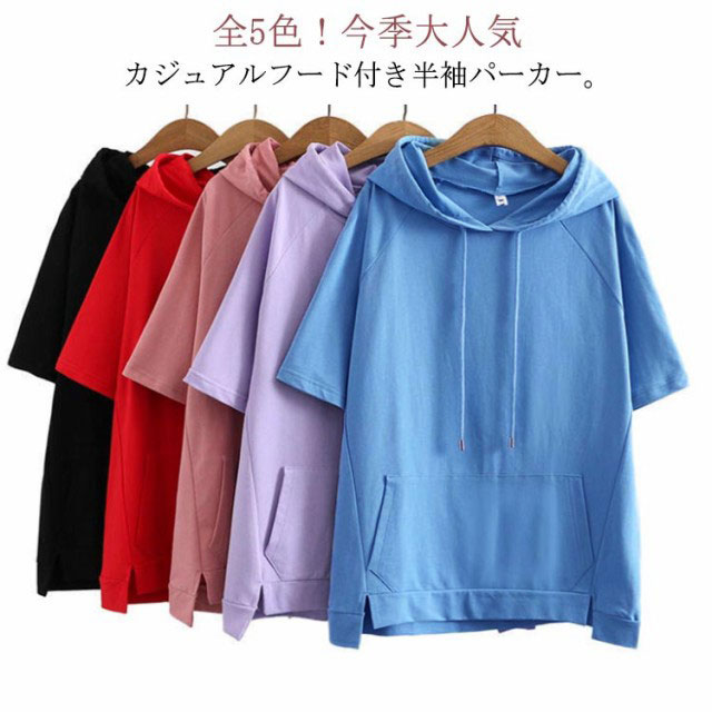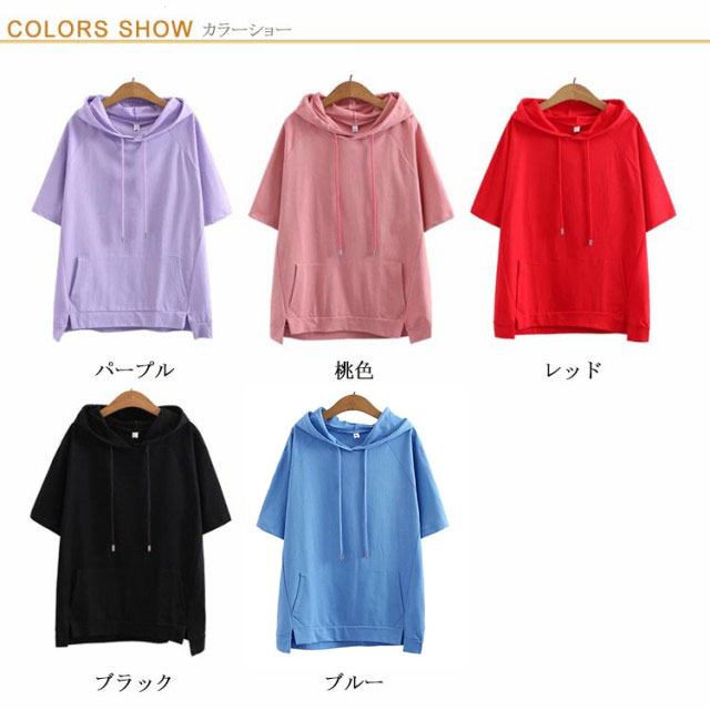 全5色×5サイズ!パーカー レディース フード付き tシャツ 送料無料 大きサイズ 半袖パーカー 5分袖パーカー プルオーバー 薄手 夏用 トップス フード付きtシャツ スリット コットン カジュアル 学生 中学生 20代30代
