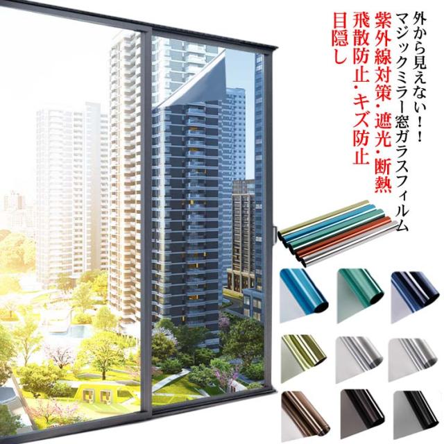 窓ガラスフィルム マジックミラー フィルム 外から見えない 窓 目隠し フィルム UVカット 紫外線カット 断熱シート 遮光 飛散防止 台風対策 プライバシー対策 はがせる diy 目隠しシート 日よけ 窓用フィルム 結露防止 シート 冷暖房効率アップ 業務用 母の日