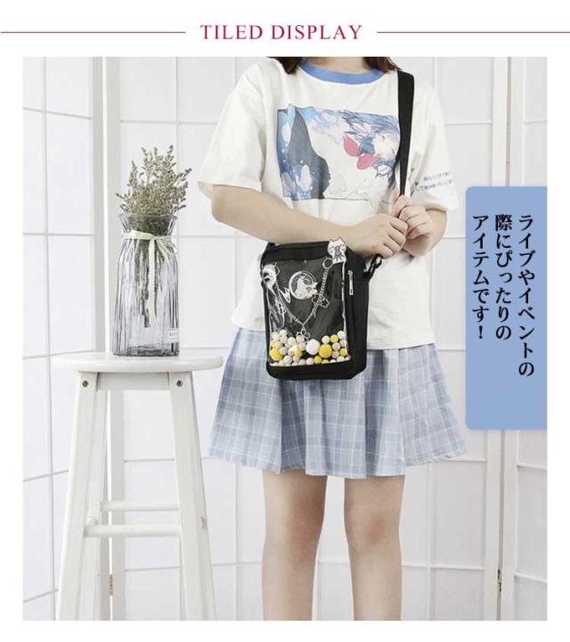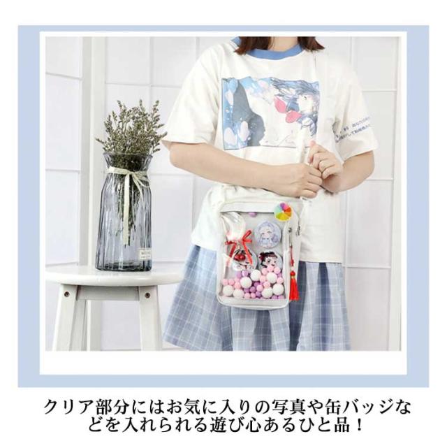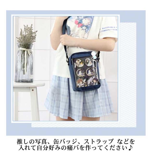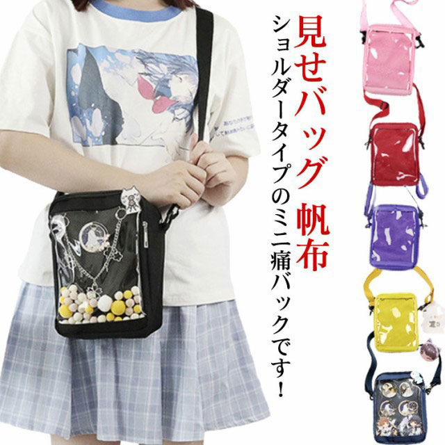 送料無料 痛バッグ ミニ 痛バ ショルダーバッグ ポシェット お財布ポシェット ポーチ クリアバッグ 見せバッグ 缶バッジ キャンバス 帆布 イベント用 黒 白 かわいい