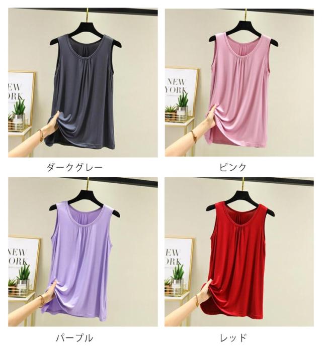 | 伸縮性抜群!ギャザー入りラウンドネックタンクトップ♪ 素肌に柔らかくなじむモダール素材。伸縮性抜群だから、すべての体型に対応できます。 シンプルな形なのでほかのアイテムとも合わせやすくてインナーとしてなど幅広く使えます。 | |