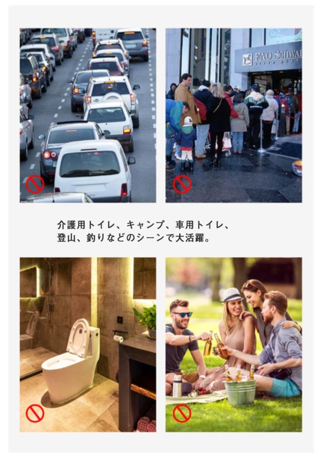 | すぐに使える簡易トイレ。 介護用トイレ、キャンプ、車用トイレ、登山、釣りなどのシーンで大活躍。 【水洗いOK!何度でも使える】 ABSプラスチック素材で水洗い可能。いつも清潔を保てます。 【安心の耐荷重200Kg】 丈夫な設計で耐荷重は200Kg。安心して使うことができます。 【コンパクト】 コンパクトに折り畳み可能。置き場に困らない。 | |