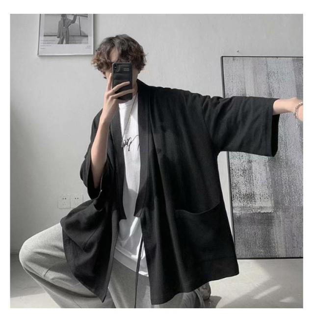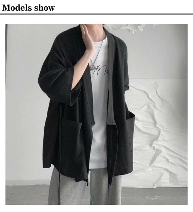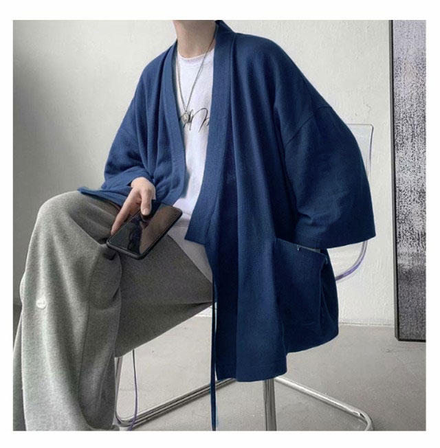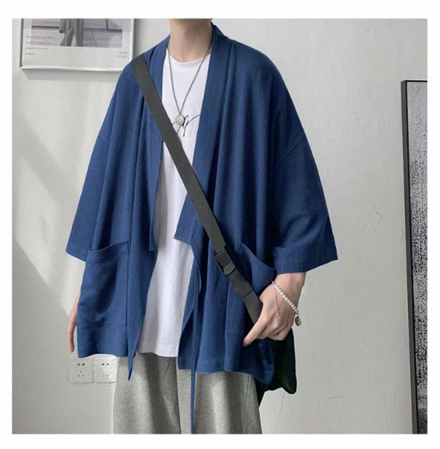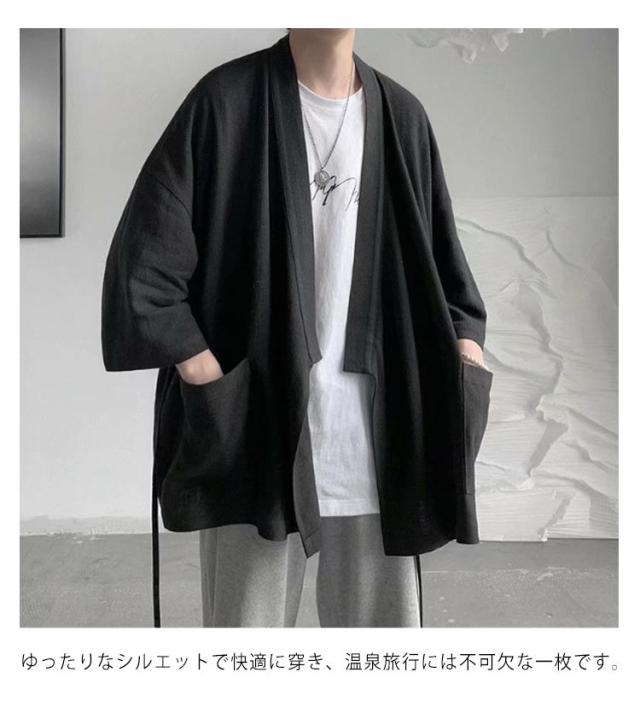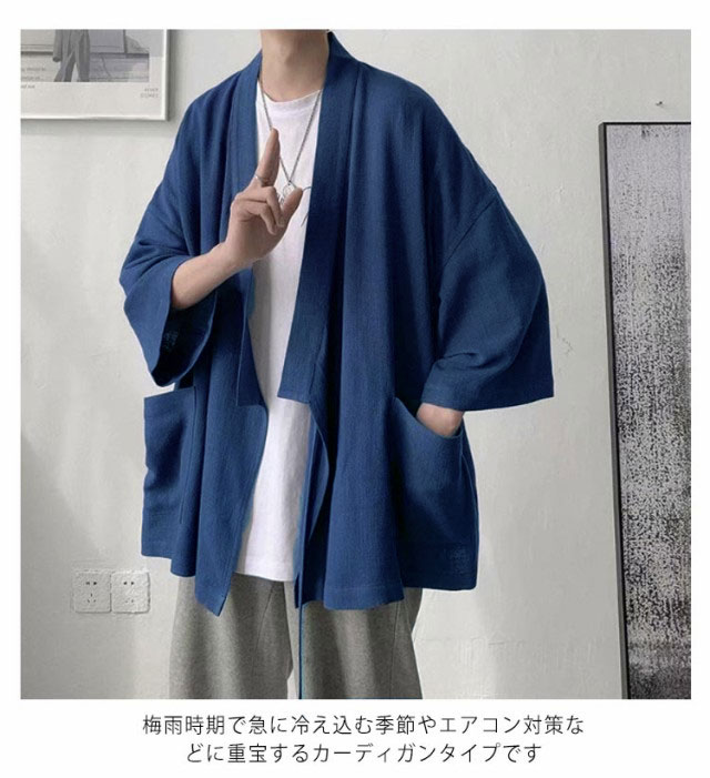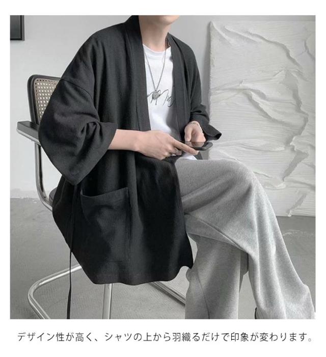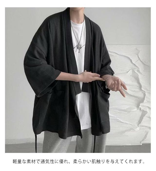 カーディガン メンズ 夏服 七分袖 和式 サマーカーディガン 無地 羽織り 和風 薄手 お洒落 シャツ 軽量 通気性 大きいサイズ ポケット付き 体型カバー 個性的 送料無料