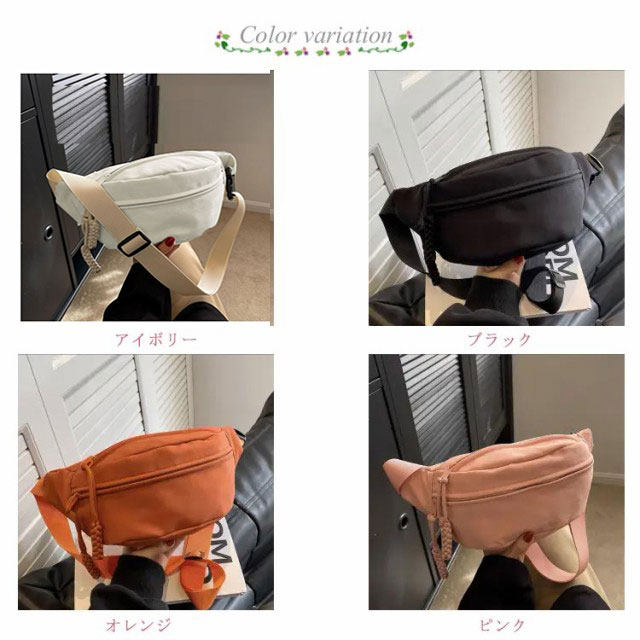 | これひとつで身軽なおでかけを実現するカジュアルボディバッグ 軽くて丈夫な厚てナイロン素材がどんなシーンでも活躍。 日常使いはもちろん、アウトドアでも活躍できるほどの大容量! 調節可能なベルト、ボディバッグとしてはもちろん、ウエストバッグとしても使える2way仕様。 シンプルなデザインなので、ユニセックスでお使いいただけます♪ 旅行のサブバッグや、アウトドアシーンでも活躍してくれる優れもの。 | |