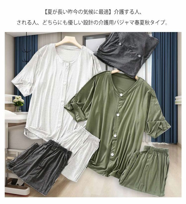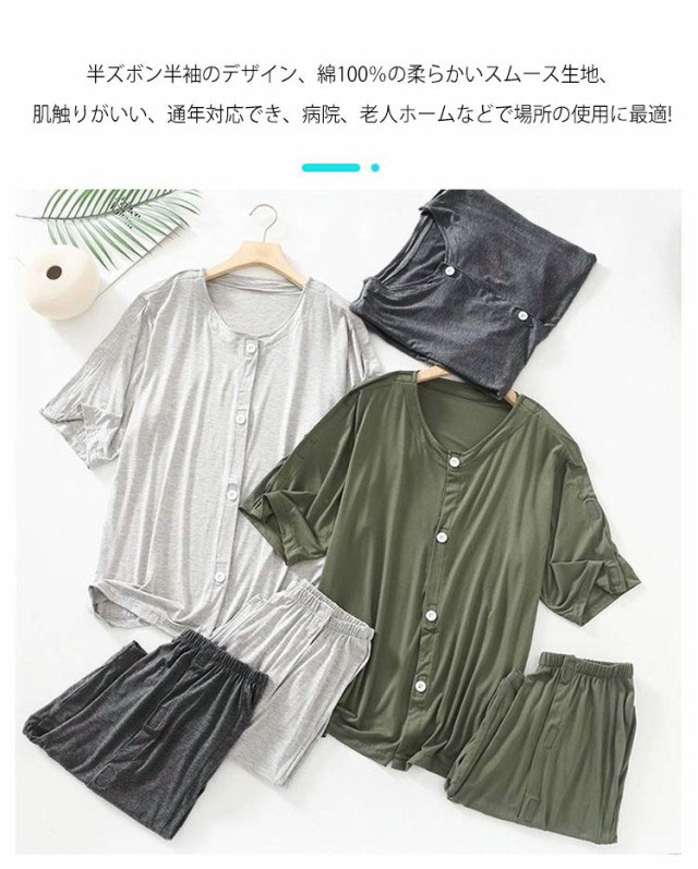 | 【全開パジャマ】見た目は普通なパジャマですが、便利なワンタッチテープがついてます。点滴、検温や着替え時の開閉が簡単する。要介助者に安心です。 【介護にやさしく】着替えが困難な方をサポートする全開介護パジャマです。オムツ替えはもちろん入浴後の着替えもこのパジャマなら安心、快適です。 【夏が長い昨今の気候に最適】介護する人、される人、どちらにも優しい設計の介護用パジャマ春夏秋タイプ。半ズボン半袖のデザイン、綿100%の柔らかいスムース生地、肌触りがいい、通年対応でき、病院、老人ホームなどで場所の使用に最適! 【快眠サポート】 通気性に優れたコットンが、ムレずにサラサラな寝心地を実現、オーガニックな安らぎで、快眠をサポートします。 | |