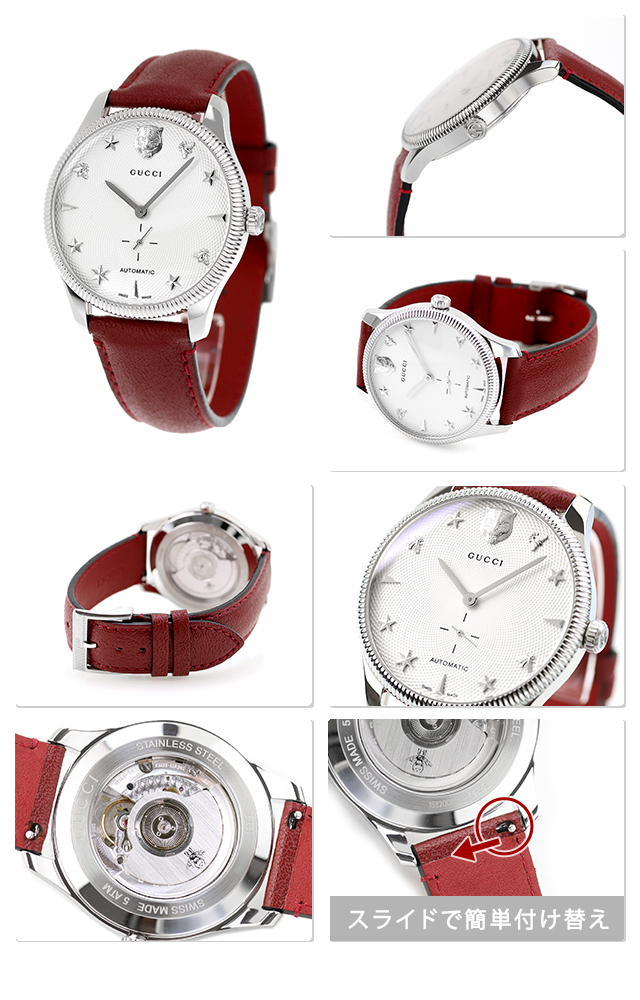 Gタイムレス 自動巻き 腕時計 ブランド メンズ 虎 蜂 星 YA126346 アナログ シルバー レッド 赤 スイス製