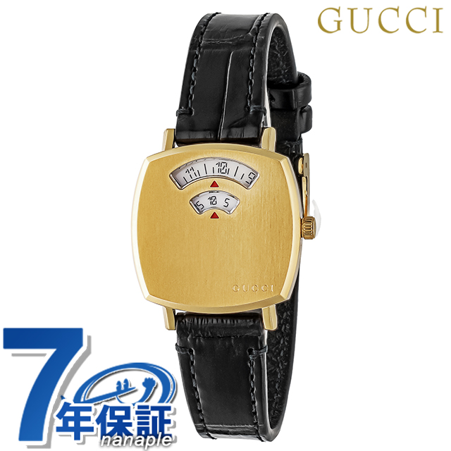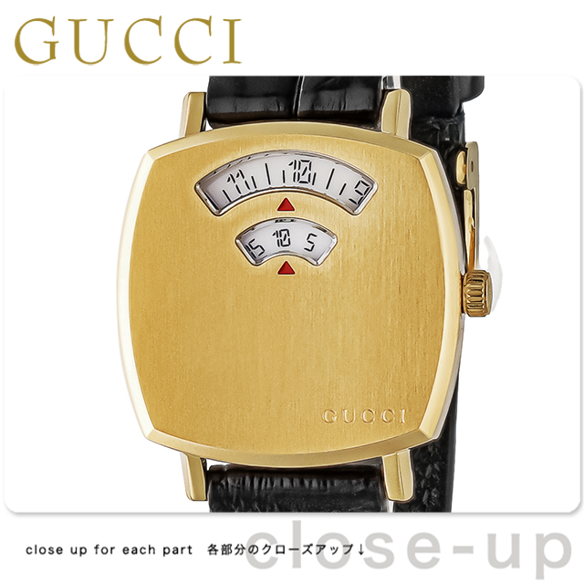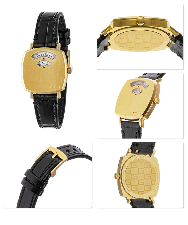 7年保証キャンペーン スイス製 メンズ レディース 腕時計 YA157506 GRIP アナログ ゴールド ブラック 黒 ◆1921年、グッチオ・グッチは革製品の会社を起業し、フィレンツェに小さな鞄店を開業。ブランドに対する彼のビジョンは、ロンドンと、彼がサボイ・ホテルで働いていた時に見た英国貴族の洗練された審美眼から培われたものです。財布や革製品以外にもアクセサリーや腕時計も品質の高さや、洗練されたデザインが人気で一気に高級ブランドの地位を確立しました。今では名を知らない人はいないぐらい世界的に有名なブランドです。 1970年代後半のスケートボーダーにインスピレーションを得たグリップ。ヴィンテージウォッチのような印象ながら、ミニマルで洗練されたスタイルを醸し出します。2つの窓から時間、分を表示します。